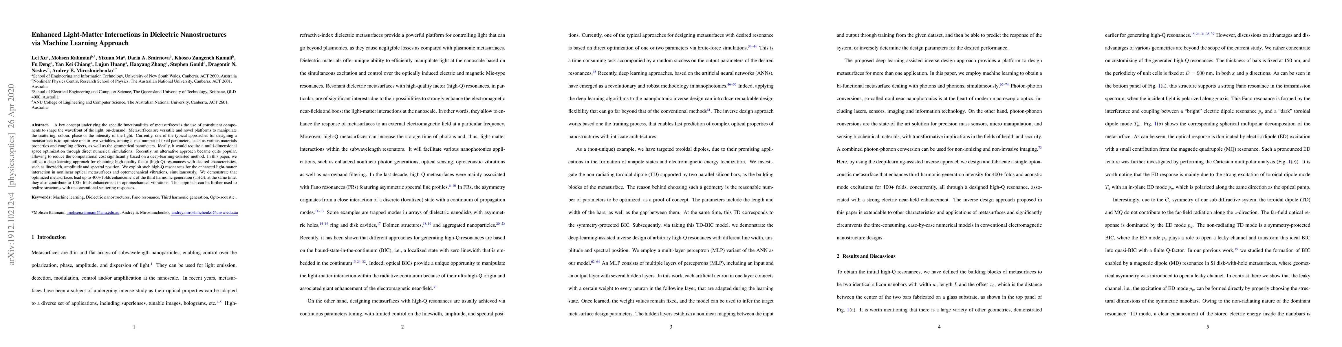 Researchers developed a machine learning approach to design dielectric nanostructures for enhanced light-matter interactions, leading to significant boosts in nonlinear optical effects and optomechanical vibrations.
