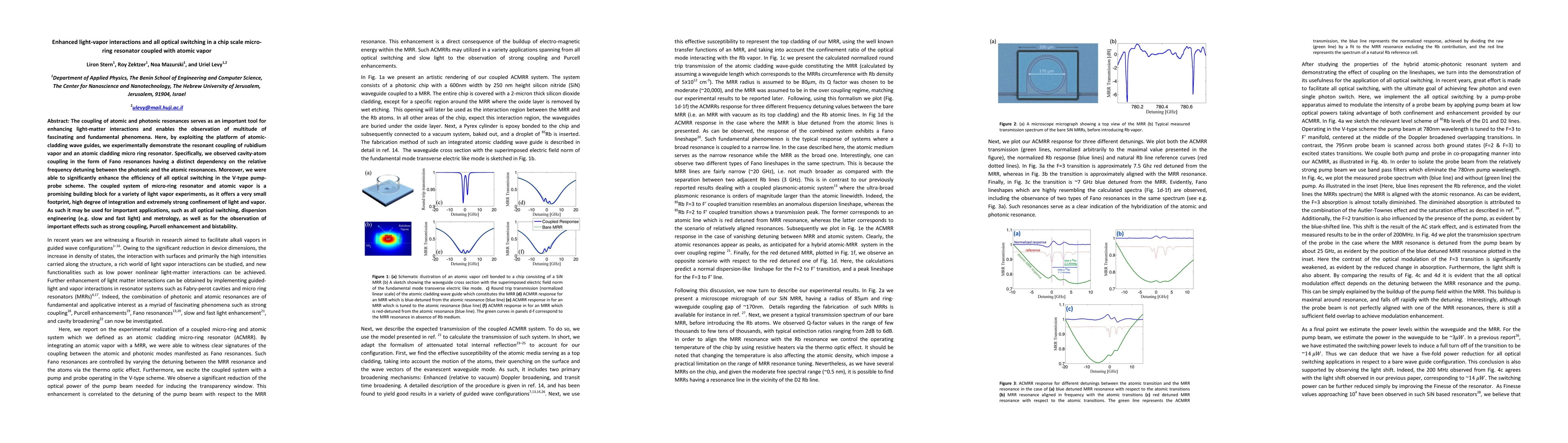 This research demonstrates the resonant coupling between a micro-ring resonator and rubidium vapor, showing Fano resonances and enhanced all optical switching efficiency. The compact, integrated system holds promise for applications in optical switching, dispersion engineering, and metrology.