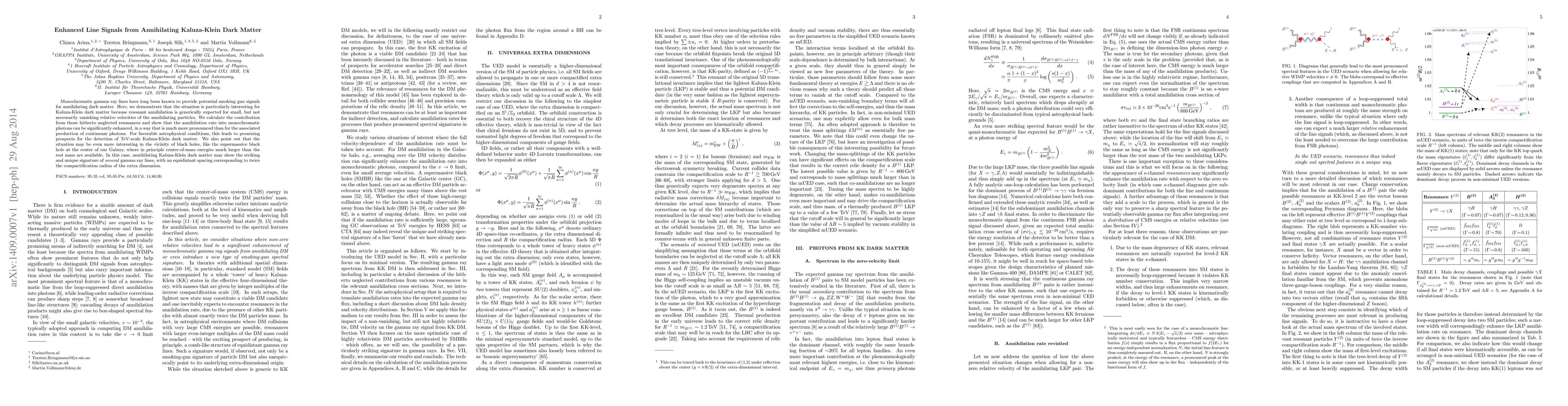 This paper investigates the enhanced gamma ray signals from annihilating Kaluza-Klein dark matter, showing that resonant annihilation can significantly boost the production of monochromatic photons. The study suggests promising detection prospects for TeV-scale Kaluza-Klein dark matter, especially near supermassive black holes where multiple gamma ray lines could emerge.