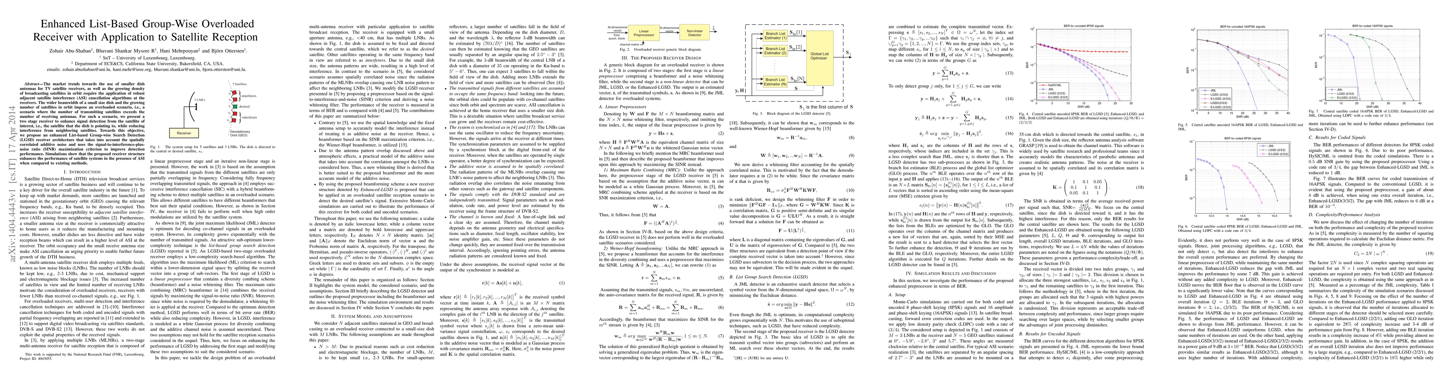 This paper proposes an enhanced List-based Group-wise Search Detection (LGSD) receiver architecture to improve signal detection in satellite reception, especially in scenarios with high satellite interference. The proposed receiver maximizes the signal-to-interference-plus noise ratio (SINR) to outperform existing methods in detecting the desired satellite signal amidst adjacent satellite interference.