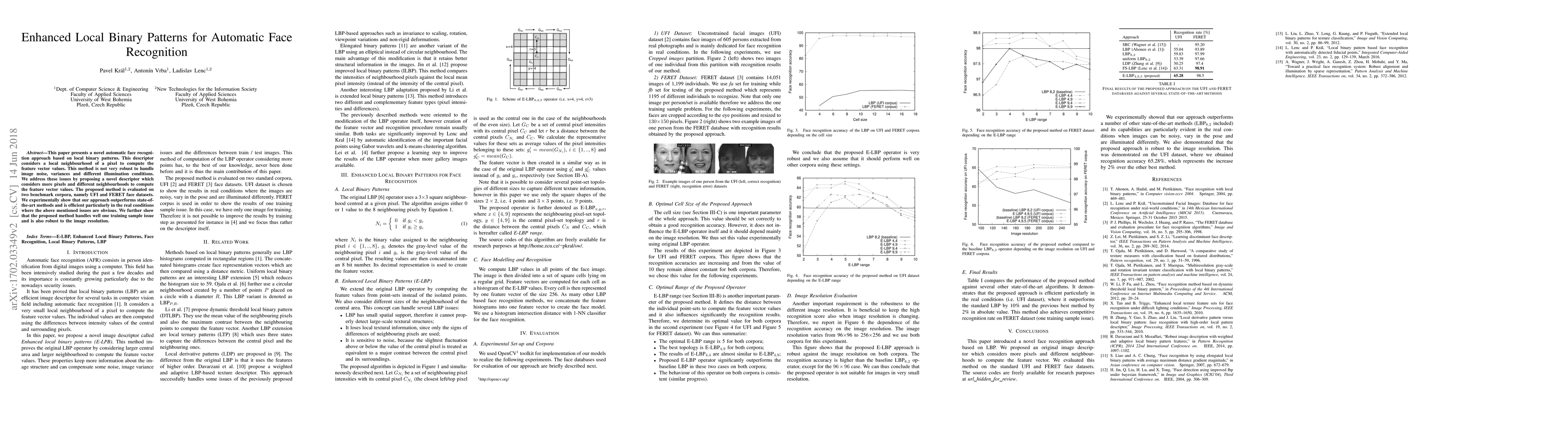 This paper presents a novel automatic face recognition approach based on local binary patterns. This descriptor considers a local neighbourhood of a pixel to compute the feature vector values. This method is not very robust to handle image noise, variances and different illumination conditions. We address these issues by proposing a novel descriptor which considers more pixels and different neighbourhoods to compute the feature vector values. The proposed method is evaluated on two benchmark corpora, namely UFI and FERET face datasets. We experimentally show that our approach outperforms state-of-the-art methods and is efficient particularly in the real conditions where the above mentioned issues are obvious. We further show that the proposed method handles well one training sample issue and is also robust to the image resolution.