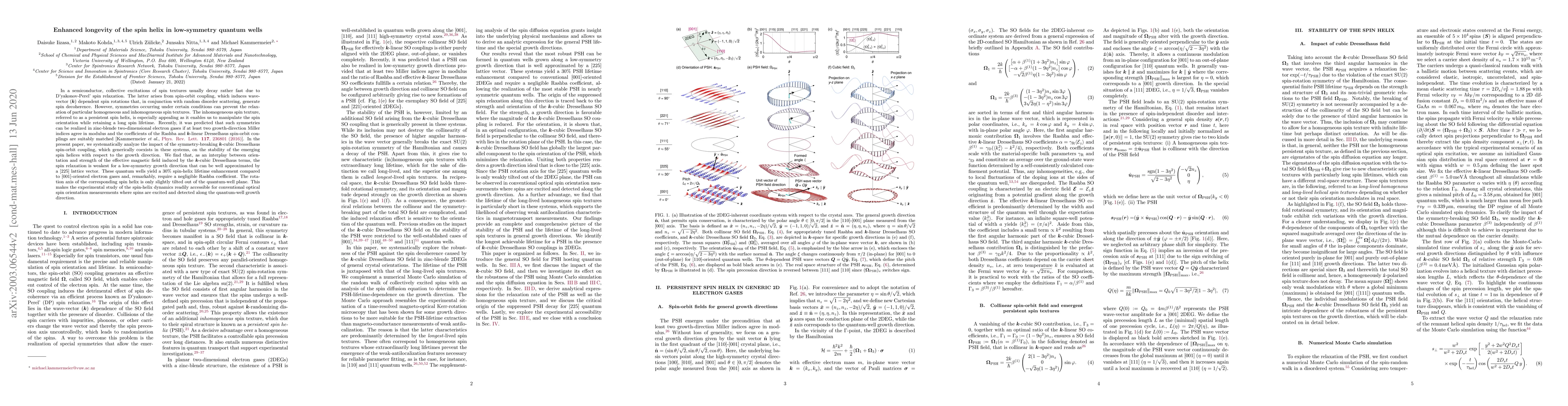 This paper investigates the stability of spin helices in low-symmetry quantum wells, finding that the cubic Dresselhaus spin-orbit coupling can enhance spin-helix lifetime by 30% in [225] lattice-vector-oriented wells compared to [001]-oriented ones. The study reveals that minimal Rashba coupling is needed for these enhanced spin lifetimes.