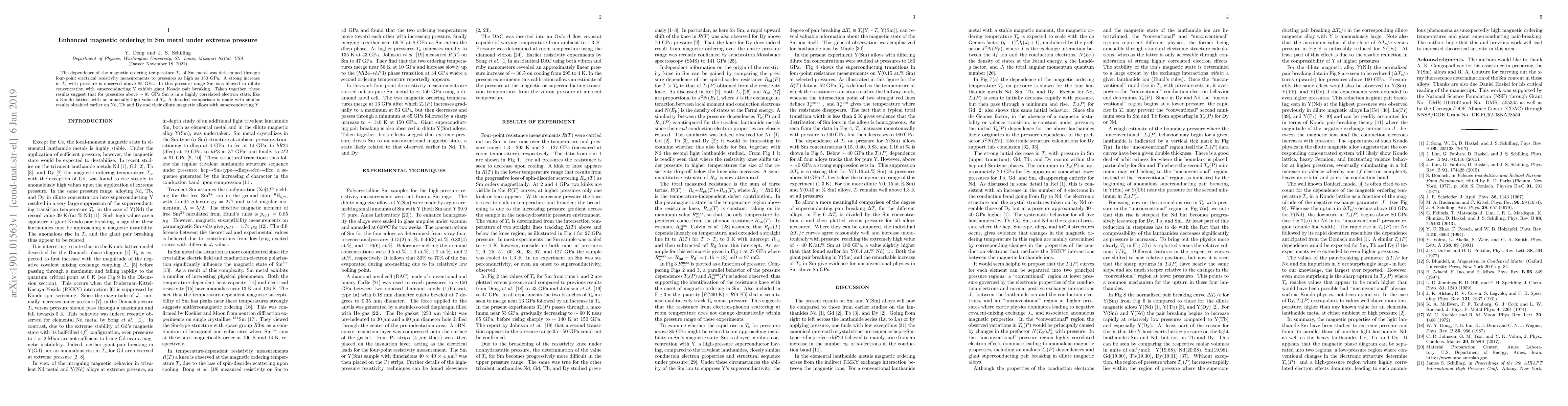 The dependence of the magnetic ordering temperature To of Sm metal was determined through four-point electrical resistivity measurements to pressures as high as 150 GPa. A strong increase in To with pressure is observed above 85 GPa. In this pressure range Sm ions alloyed in dilute concentration with superconducting Y exhibit giant Kondo pair breaking. Taken together, these results suggest that for pressures above 85 GPa Sm is in a highly correlated electron state, like a Kondo lattice, with an unusually high value of To. A detailed comparison is made with similar results obtained earlier on Nd, Tb and Dy and their dilute magnetic alloys with superconducting Y.