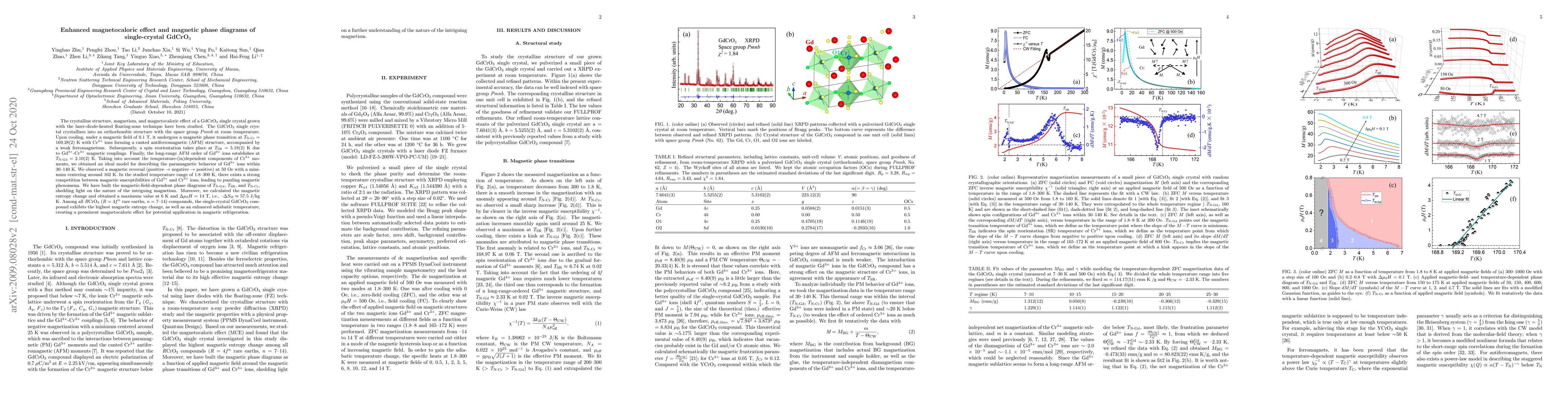 Researchers studied a GdCrO3 single crystal, finding complex magnetic phases and a strong magnetocaloric effect. Using laser-diode-heated floating-zone technique, they observed distinct phase transitions at 169.28 K, 5.18 K, and 2.10 K, with a maximum magnetic entropy change of 57.5 J/kg K at 6 K, suggesting potential for magnetic refrigeration applications.