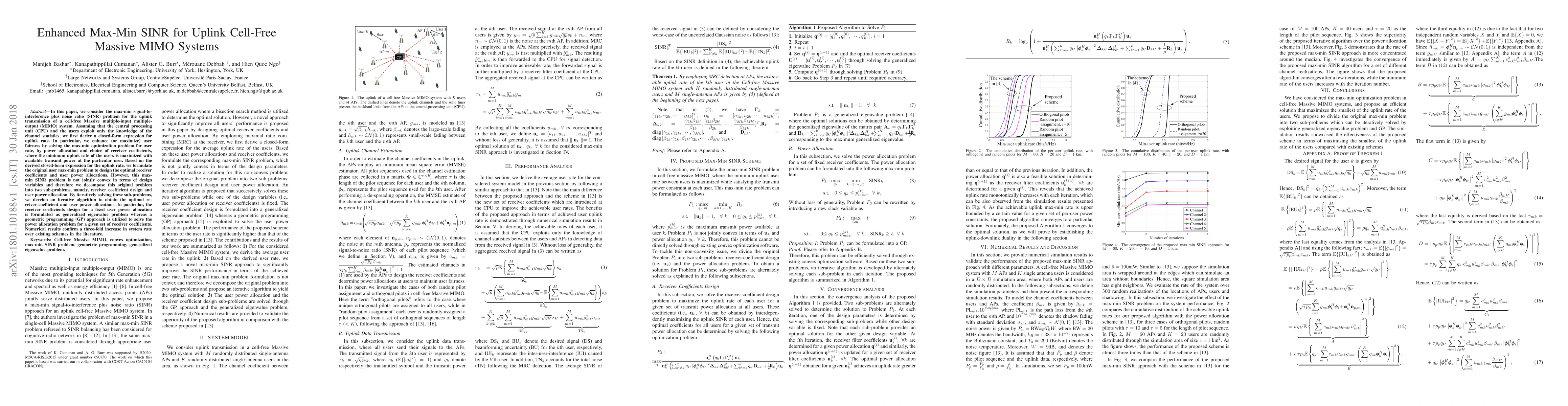 The paper proposes an iterative algorithm to solve the max-min SINR problem in cell-free Massive MIMO systems by decomposing it into two sub-problems: receiver coefficient design and user power allocation. It uses a generalized eigenvalue problem for receiver coefficient design and a geometric programming approach for power allocation.