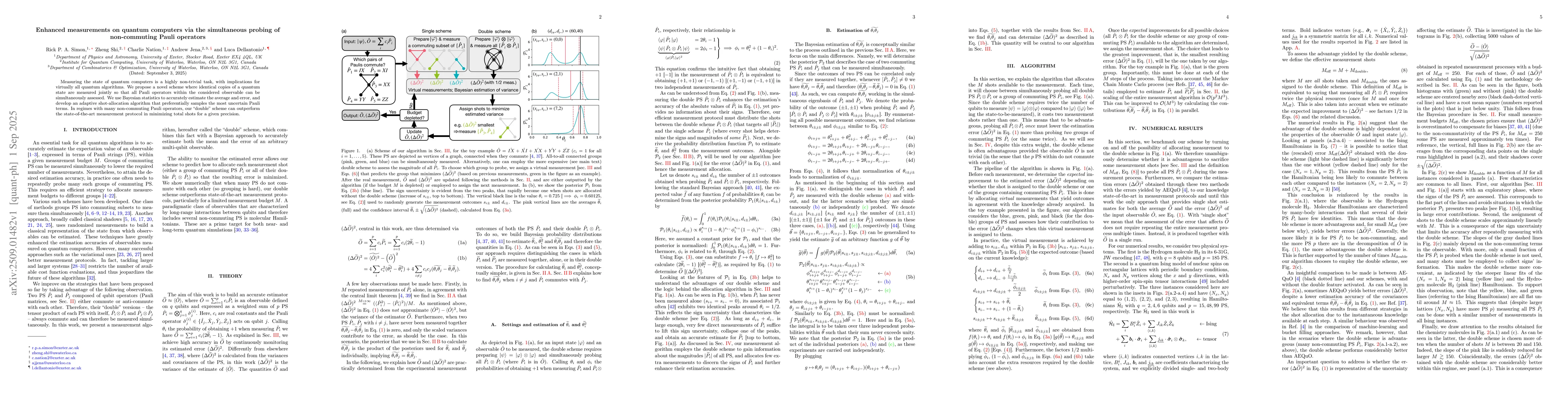 Measuring the state of quantum computers is a highly non-trivial task, with implications for virtually all quantum algorithms. We propose a novel scheme where identical copies of a quantum state are measured jointly so that all Pauli operators within the considered observable can be simultaneously assessed. We use Bayesian statistics to accurately estimate the average and error, and develop an adaptive shot-allocation algorithm that preferentially samples the most uncertain Pauli terms. In regimes with many non-commuting Pauli operators, our ``double'' scheme can outperform the state-of-the-art measurement protocol in minimizing total shots for a given precision.