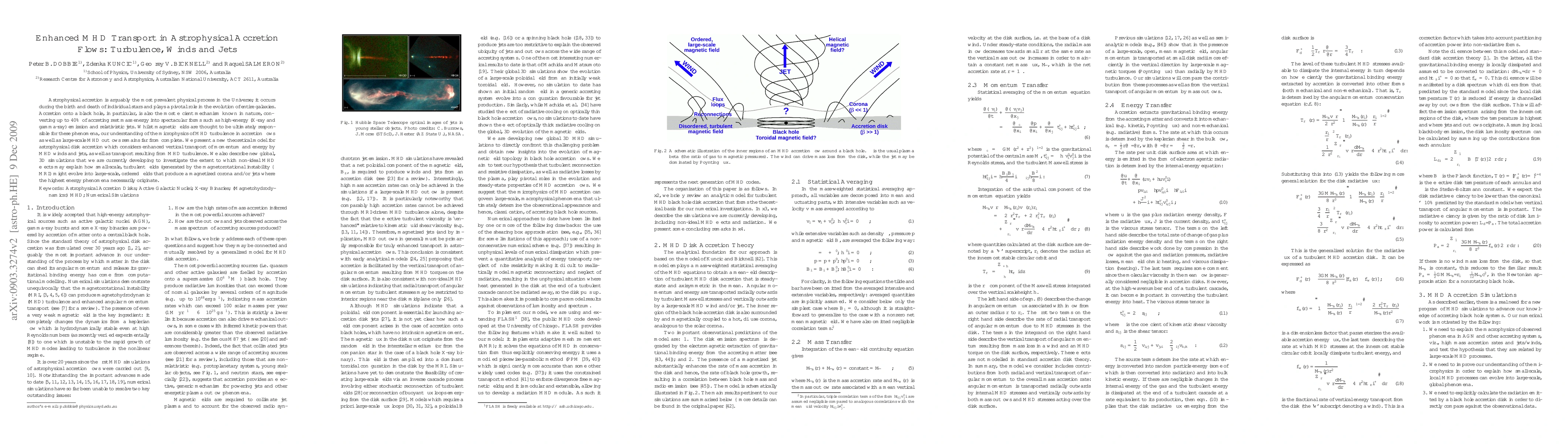 This paper presents a new theoretical model for astrophysical accretion disk processes, focusing on enhanced momentum and energy transport via MHD winds and jets, and explores the evolution of turbulent fields into large-scale ordered fields through ongoing 3D simulations. The study aims to better understand the microphysics of MHD turbulence and its role in generating high-energy emissions and relativistic jets.