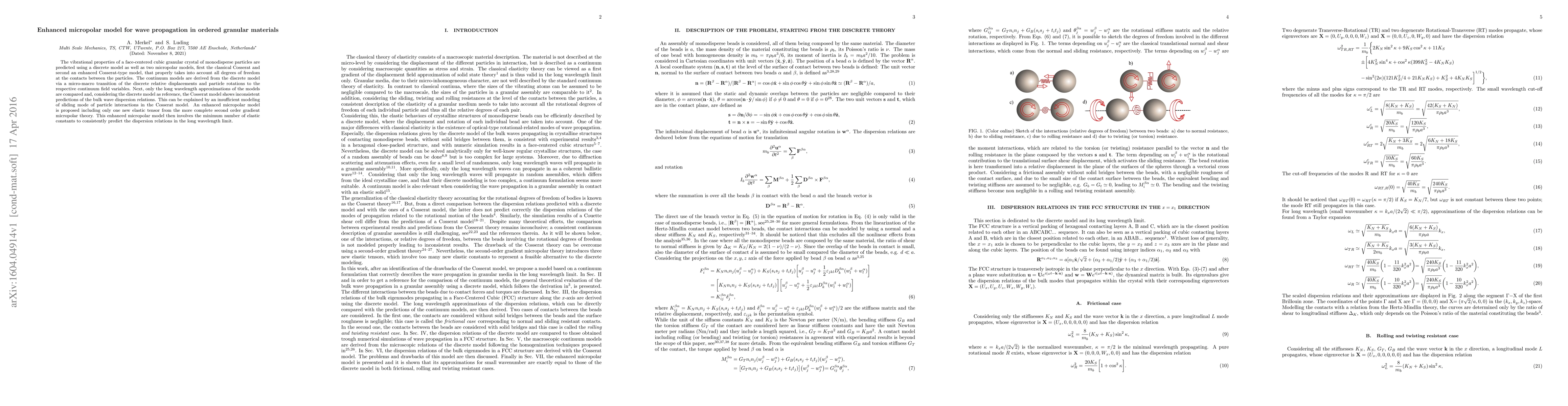 This paper proposes an enhanced micropolar model to accurately predict wave propagation in ordered granular materials, showing that the classical Cosserat model fails to capture the bulk wave dispersion relations due to inadequate modeling of particle interactions. The improved model incorporates a single additional elastic tensor to better represent the sliding mode at particle contacts.