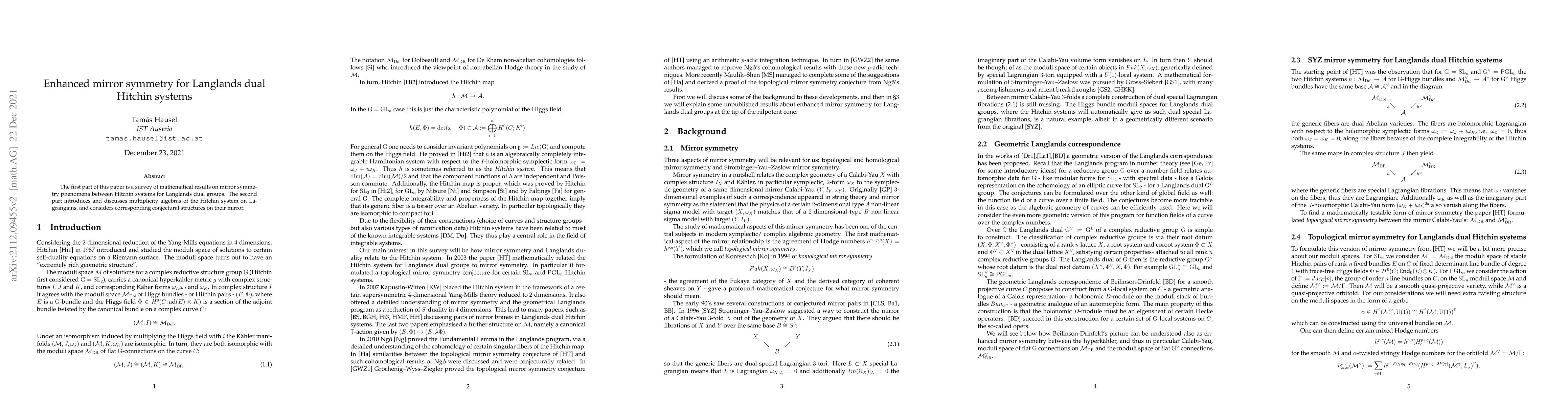 This paper surveys mirror symmetry phenomena between Langlands dual Hitchin systems and introduces multiplicity algebras of the Hitchin system, proposing conjectural structures on their mirror.