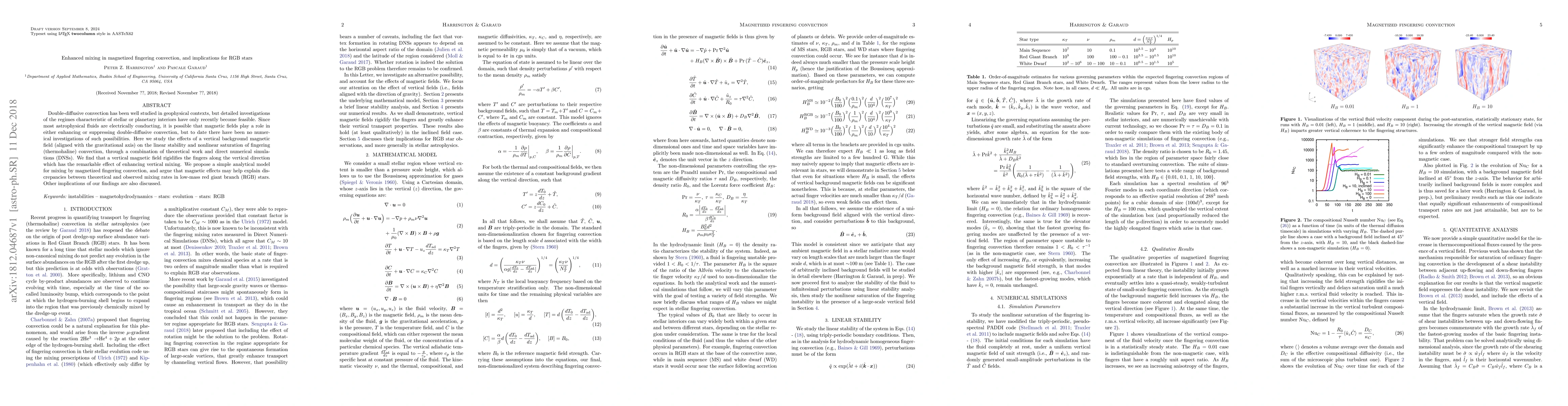 This study investigates the impact of a vertical magnetic field on fingering convection in astrophysical fluids, revealing enhanced vertical mixing due to the rigidification of convection fingers. The findings suggest that magnetic fields may resolve discrepancies in mixing rates observed in low-mass red giant branch stars.