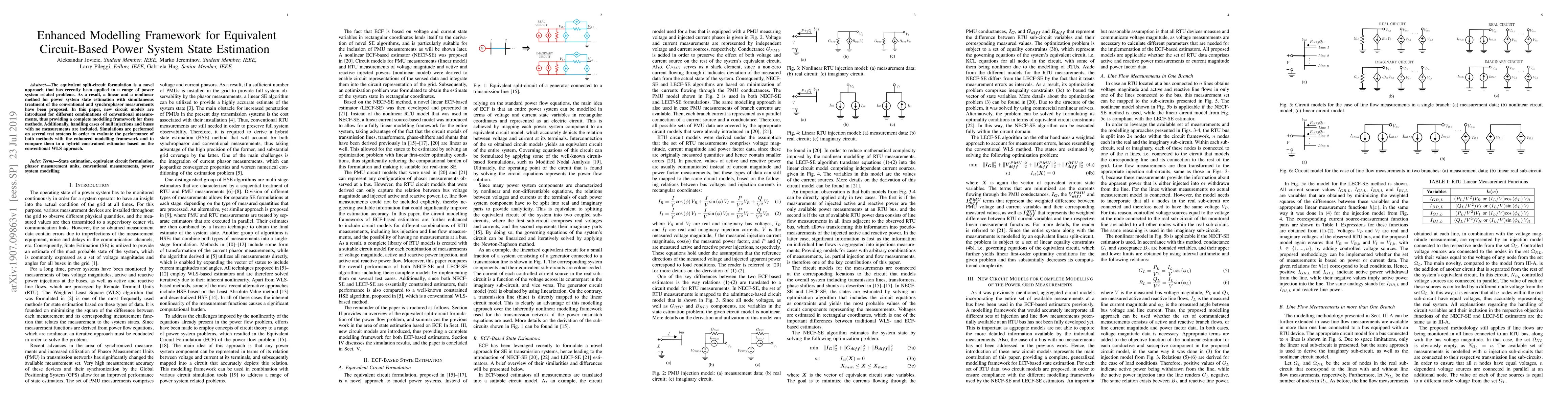 The paper presents novel circuit models for various measurement combinations and enhanced modelling frameworks for ECF-based state estimation methods, including handling null injections and buses with no measurements.