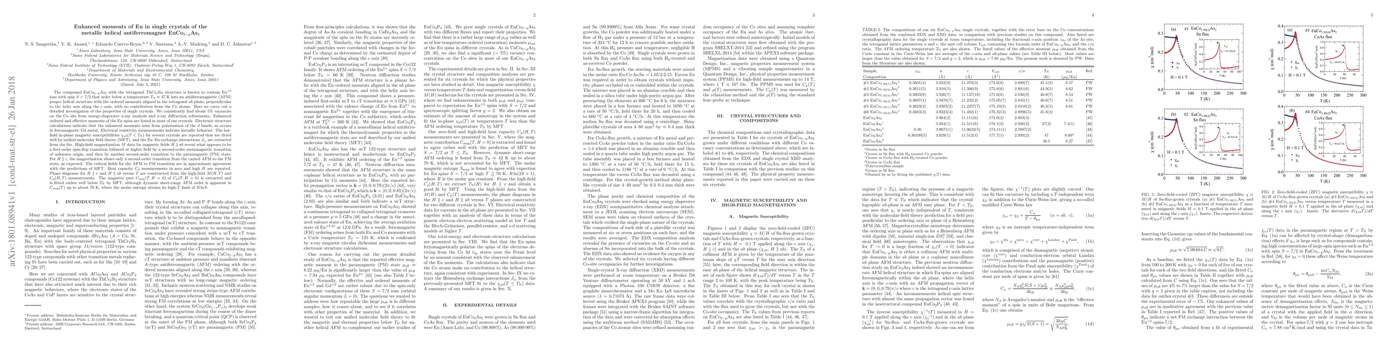 The compound EuCo{2-y}As2 with the tetragonal ThCr2Si2 structure is known to contain Eu{+2} ions with spin S = 7/2 that order below a temperature TN = 47 K into an antiferromagnetic (AFM) proper helical structure with the ordered moments aligned in the tetragonal ab plane, perpendicular to the helix axis along the c axis, with no contribution from the Co atoms. Here we carry out a detailed investigation of the properties of single crystals. Enhanced ordered and effective moments of the Eu spins are found in most of our crystals. Electronic structure calculations indicate that the enhanced moments arise from polarization of the d bands, as occurs in ferromagnetic Gd metal. Electrical resistivity measurements indicate metallic behavior. The low-field in-plane magnetic susceptibilities chi{ab}(T < TN) for several crystals are reported that are fitted well by unified molecular field theory (MFT), and the Eu-Eu exchange interactions Jij are extracted from the fits. High-field magnetization M data for magnetic fields H||ab reveal what appears to be a first-order spin-flop transition followed at higher field by a second-order metamagnetic transition of unknown origin, and then by another second-order transition to the paramagnetic (PM) state. For H||c, the magnetization shows only a second-order transition from the canted AFM to the PM state, as expected. The critical fields for the AFM to PM transition are in approximate agreement with the predictions of MFT. Heat capacity Cp measurements in zero and high H are reported. Phase diagrams for H||c and H||ab versus T are constructed from the high-field M(H,T) and Cp(H,T) measurements. The magnetic part Cmag(T, H = 0) of Cp(T, H = 0) is extracted and is fitted rather well below TN by MFT, although dynamic short-range AFM order is apparent in Cmag(T) up to about 70 K, where the molar entropy attains its high-T limit of R ln8.