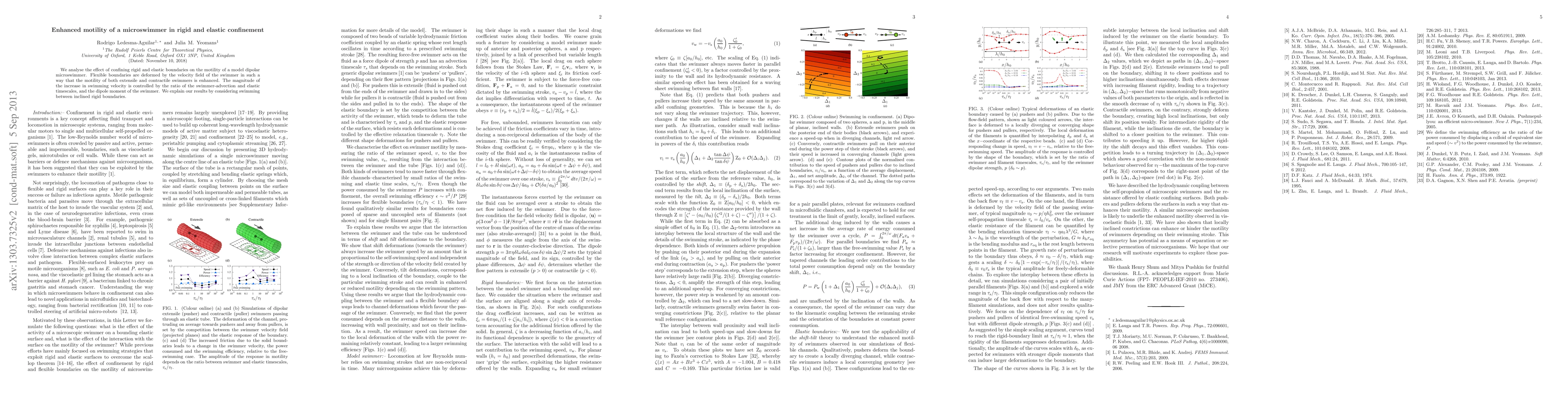 We analyse the effect of confining rigid and elastic boundaries on the motility of a model dipolar microswimmer. Flexible boundaries are deformed by the velocity field of the swimmer in such a way that the motility of both extensile and contractile swimmers is enhanced. The magnitude of the increase in swimming velocity is controlled by the ratio of the swimmer-advection and elastic timescales, and the dipole moment of the swimmer. We explain our results by considering swimming between inclined rigid boundaries.