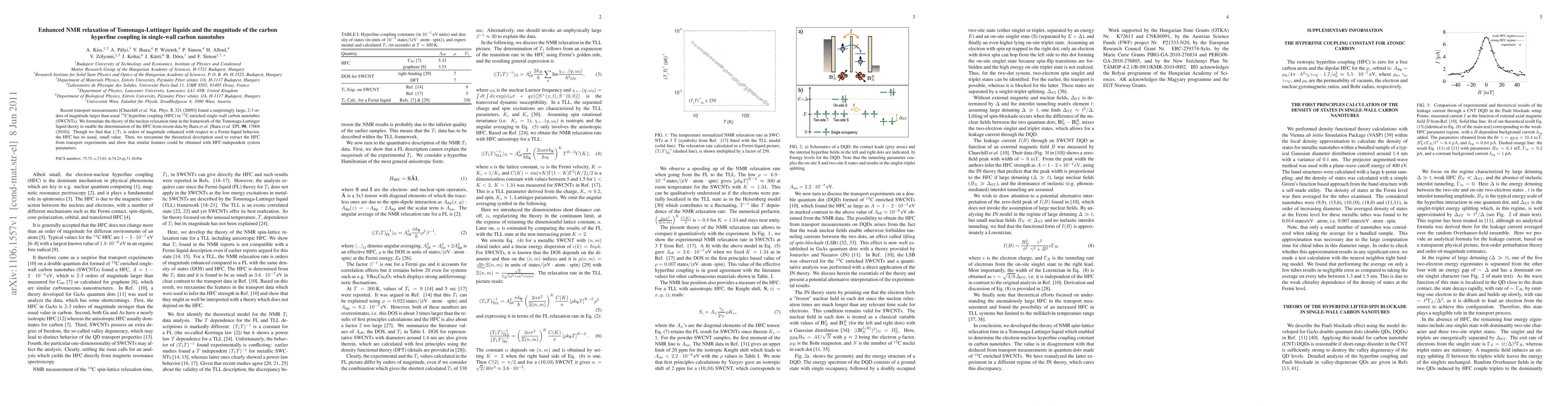 This paper investigates the enhanced nuclear magnetic resonance (NMR) relaxation in Tomonaga-Luttinger liquids within single-wall carbon nanotubes, revealing a large $^{13}$C hyperfine coupling. Despite the enhanced relaxation, the calculated hyperfine coupling remains small, suggesting that transport experiment interpretations may not accurately reflect the true hyperfine coupling.