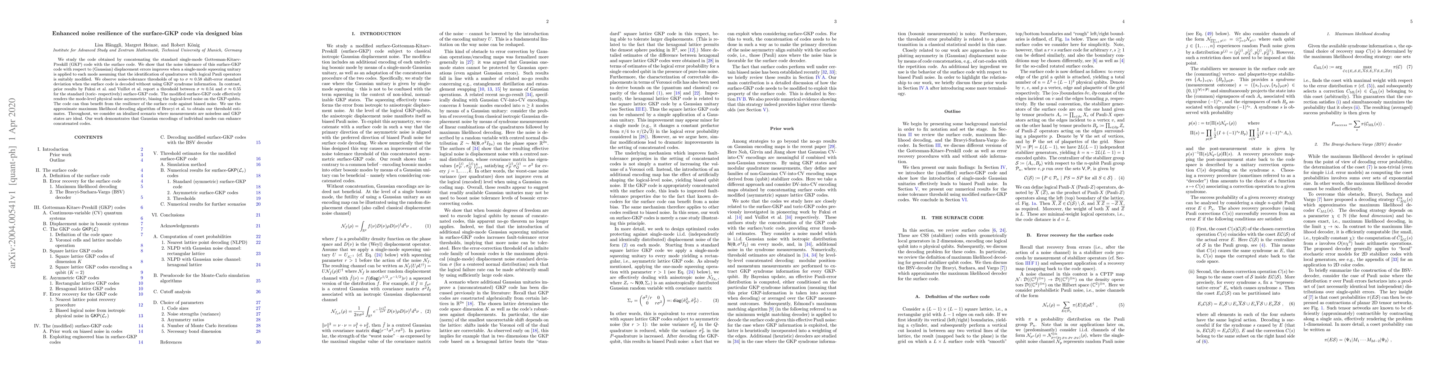 This paper investigates a concatenated surface-GKP code that enhances noise resilience by applying a single-mode squeezing unitary to each mode, achieving a noise tolerance threshold of up to $\sigma \approx 0.58$ for Gaussian displacement errors. This surpasses previous results and leverages the surface code's resilience to biased noise.