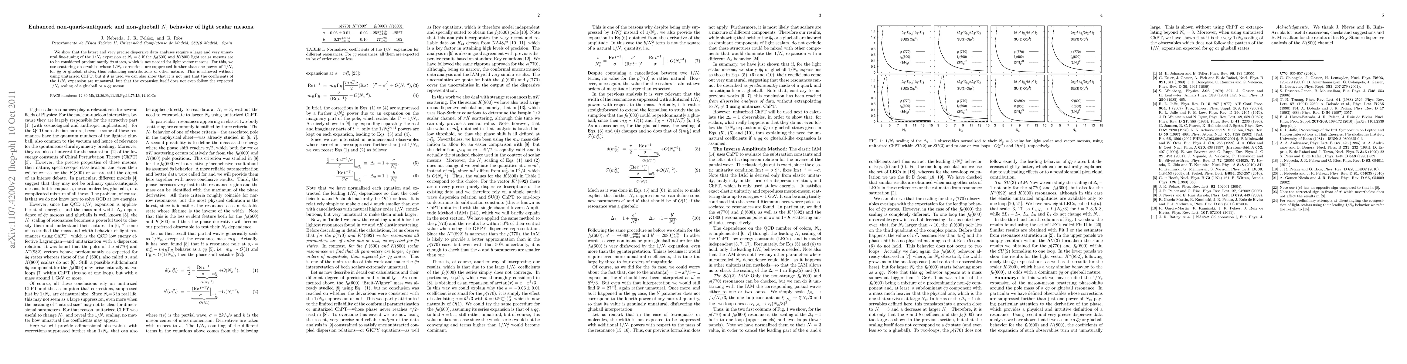 We show that the latest and very precise dispersive data analyses require a large and very unnat- ural fine-tuning of the 1/Nc expansion at Nc = 3 if the f_0(600) and K(800) light scalar mesons are to be considered predominantly quark-antiquark states, which is not needed for light vector mesons. For this, we use scattering observables whose 1/Nc corrections are suppressed further than one power of 1/Nc for quark-antiquark or glueball states, thus enhancing contributions of other nature. This is achieved without using unitarized ChPT, but if it is used we can also show that it is not just that the coefficients of the 1/Nc expansion are unnatural, but that the expansion itself does not even follow the expected 1/Nc scaling of a glueball or a quark-antiquark meson.