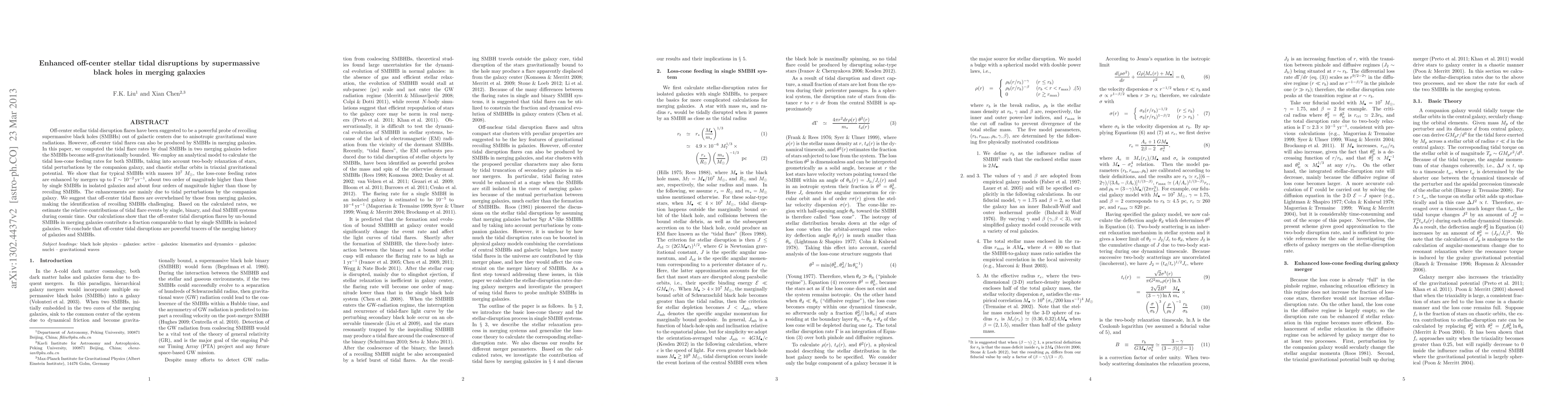 Off-center stellar tidal disruption flares have been suggested to be a powerful probe of recoiling supermassive black holes (SMBHs) out of galactic centers due to anisotropic gravitational wave radiations. However, off-center tidal flares can also be produced by SMBHs in merging galaxies. In this paper, we computed the tidal flare rates by dual SMBHs in two merging galaxies before the SMBHs become self-gravitationally bounded. We employ an analytical model to calculate the tidal loss-cone feeding rates for both SMBHs, taking into account two-body relaxation of stars, tidal perturbations by the companion galaxy, and chaotic stellar orbits in triaxial gravitational potential. We show that for typical SMBHs with mass 10^7 M_\sun, the loss-cone feeding rates are enhanced by mergers up to \Gamma ~ 10^{-2} yr^{-1}, about two order of magnitude higher than those by single SMBHs in isolated galaxies and about four orders of magnitude higher than those by recoiling SMBHs. The enhancements are mainly due to tidal perturbations by the companion galaxy. We suggest that off-center tidal flares are overwhelmed by those from merging galaxies, making the identification of recoiling SMBHs challenging. Based on the calculated rates, we estimate the relative contributions of tidal flare events by single, binary, and dual SMBH systems during cosmic time. Our calculations show that the off-center tidal disruption flares by un-bound SMBHs in merging galaxies contribute a fraction comparable to that by single SMBHs in isolated galaxies. We conclude that off-center tidal disruptions are powerful tracers of the merging history of galaxies and SMBHs.