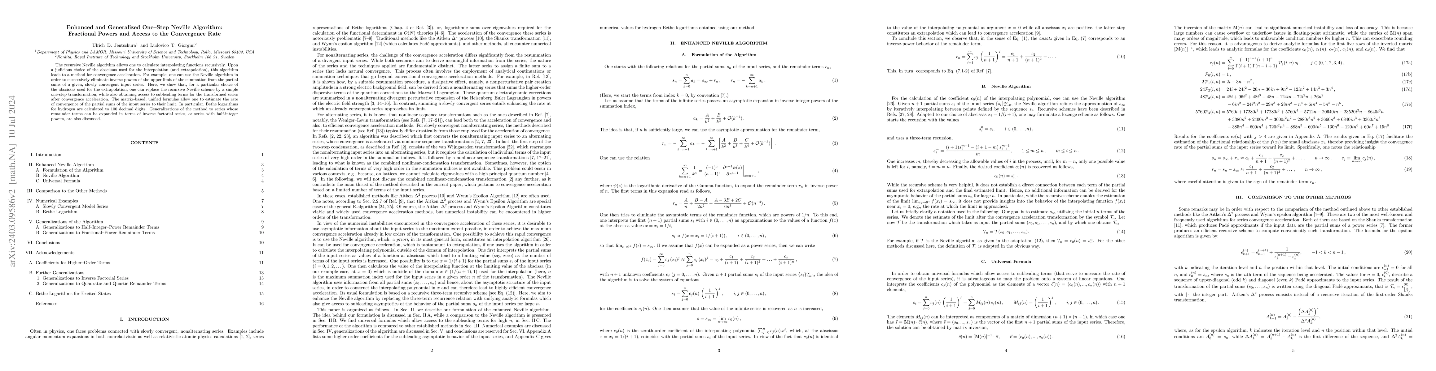 This paper proposes an enhanced one-step Neville algorithm that accelerates convergence by replacing the recursive scheme with a simple transformation, while also providing access to the convergence rate through matrix-based formulas. The method is demonstrated by calculating Bethe logarithms for hydrogen to 100 decimal places.