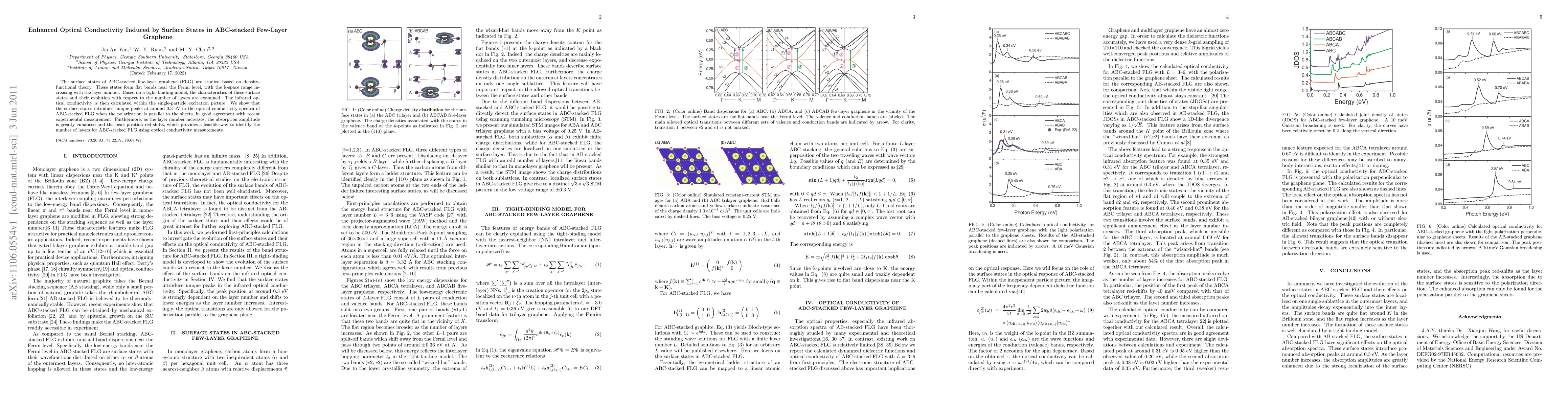 This study investigates the optical conductivity of ABC-stacked few-layer graphene (FLG) using density-functional theory and tight-binding models, revealing unique peaks at 0.3 eV in the optical conductivity spectra due to surface states. As the number of layers increases, the absorption amplitude enhances and the peak red-shifts, offering a method to determine layer count via optical conductivity measurements.