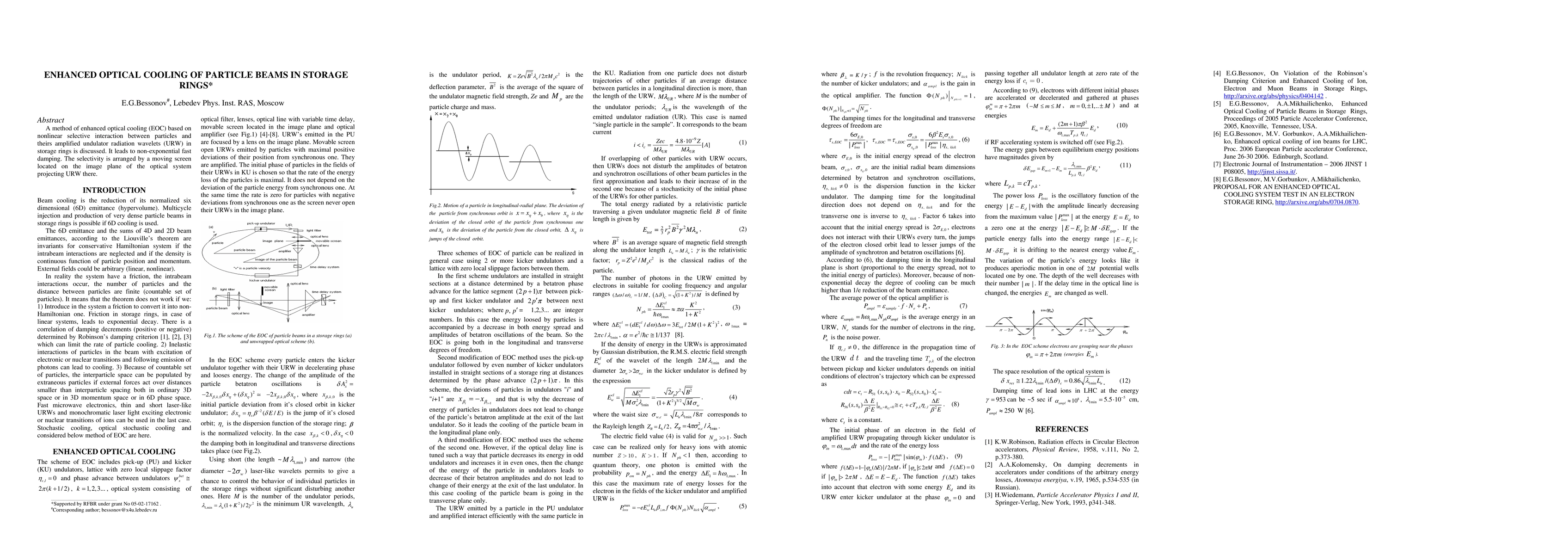 Summary: This paper proposes a method for enhanced optical cooling in storage rings using nonlinear interactions between particles and amplified undulator radiation wavelets, leading to rapid non-exponential damping, facilitated by a moving screen on the optical system's image plane.