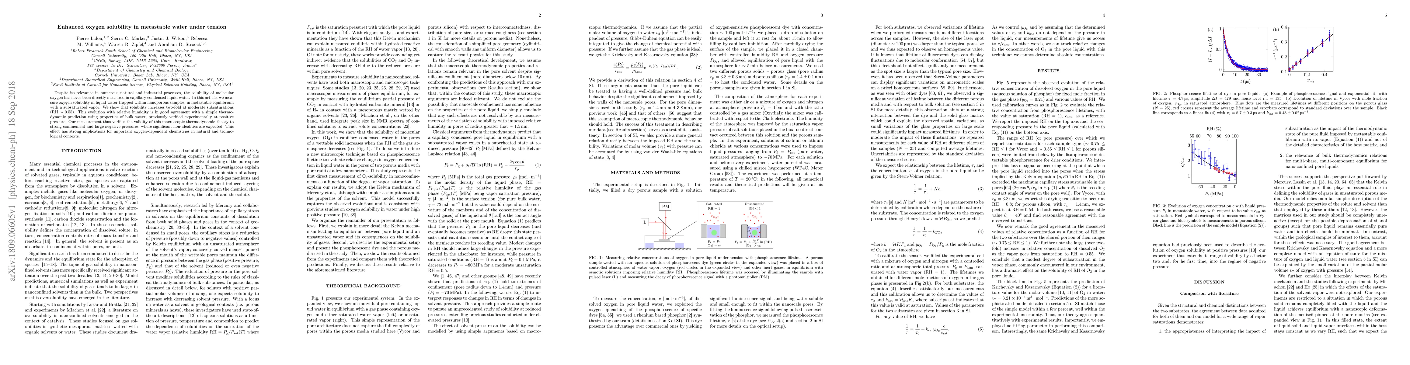 This study measures oxygen solubility in metastable water under tension within nanoporous samples, finding a two-fold increase at moderate subsaturated vapor conditions. The results validate the macroscopic thermodynamic theory for oxygen solubility in strongly confined and negatively pressurized water, with significant implications for oxygen-dependent processes.
