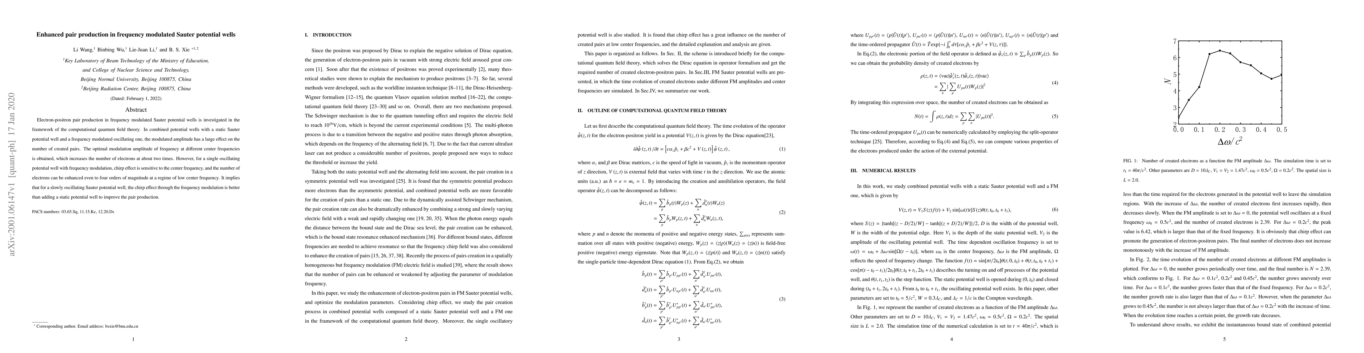 This study explores electron-positron pair production in combined Sauter and frequency modulated potential wells using computational quantum field theory. The research finds that optimal modulation can double electron pair production, while low-frequency modulation in a single oscillating well can enhance it by up to four orders of magnitude, indicating that frequency modulation is more effective than static potentials for low-frequency oscillations.