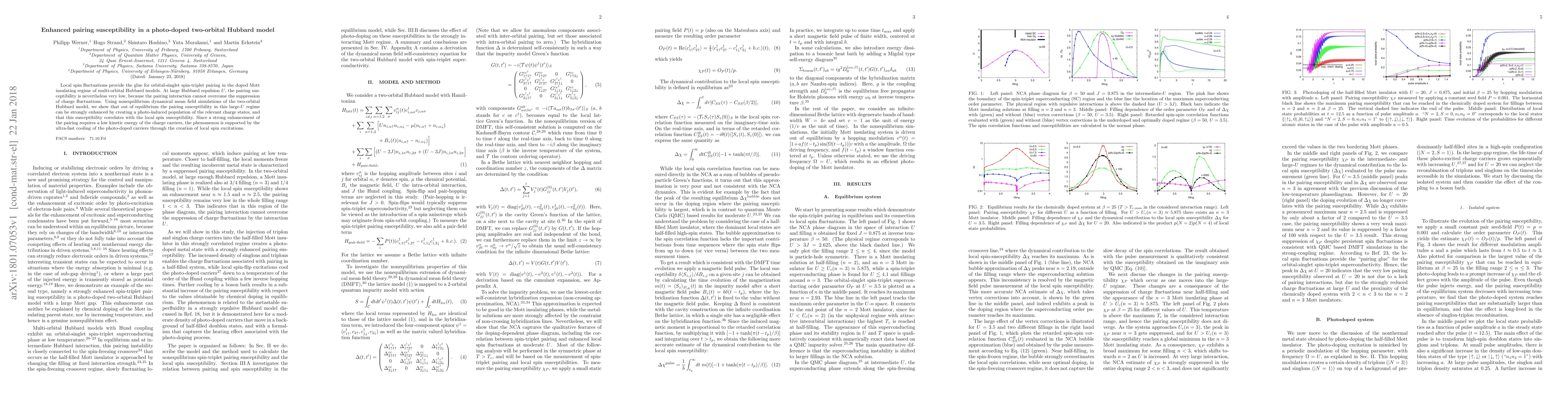 Local spin fluctuations provide the glue for orbital-singlet spin-triplet pairing in the doped Mott insulating regime of multi-orbital Hubbard models. At large Hubbard repulsion $U$, the pairing susceptibility is nevertheless very low, because the pairing interaction cannot overcome the suppression of charge fluctuations. Using nonequilibrium dynamical mean field simulations of the two-orbital Hubbard model, we show that out of equilibrium the pairing susceptibility in this large-$U$ regime can be strongly enhanced by creating a photo-induced population of the relevant charge states, and that this susceptibility correlates with the local spin susceptibility. Since a strong enhancement of the pairing requires a low kinetic energy of the charge carriers, the phenomenon is supported by the ultra-fast cooling of the photo-doped carriers through the creation of local spin excitations.