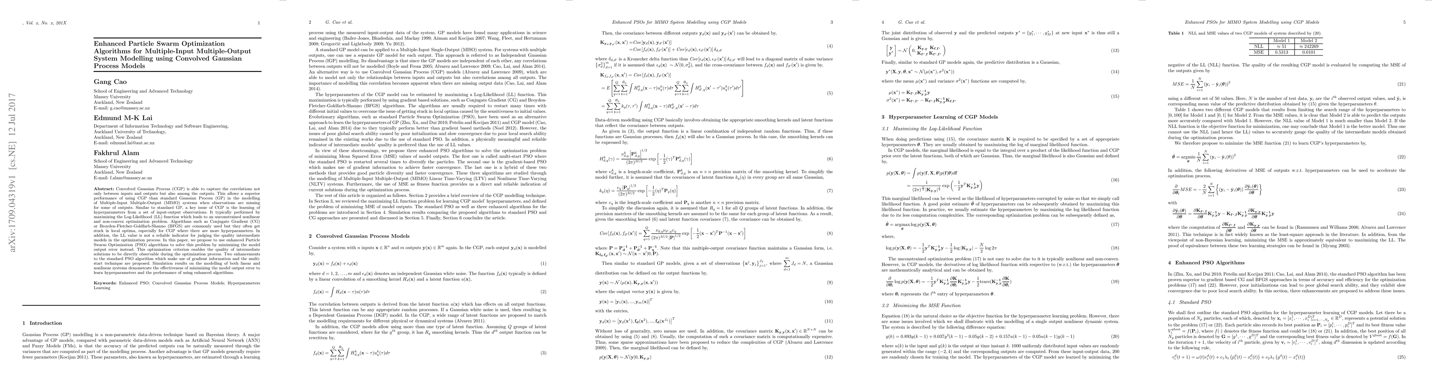 This paper proposes using enhanced Particle Swarm Optimization algorithms to learn hyperparameters for Convolved Gaussian Process models in MIMO systems, improving performance over traditional methods.