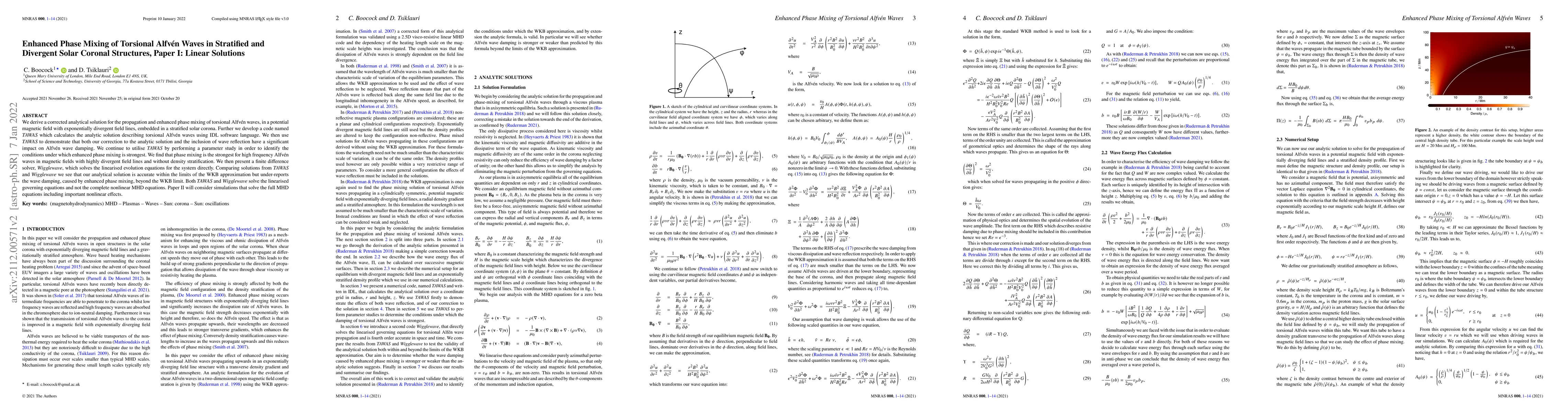 This paper presents a corrected analytical solution for the propagation of torsional Alfvén waves in stratified and divergent solar coronal structures, and develops a code TAWAS to calculate this solution. The study finds that enhanced phase mixing is strongest for high-frequency waves in highly divergent magnetic fields without density stratification, and introduces Wigglewave for solving the linearised evolution equations, showing that the analytical solution is accurate within the WKB approximation but under-reports wave damping beyond this limit.