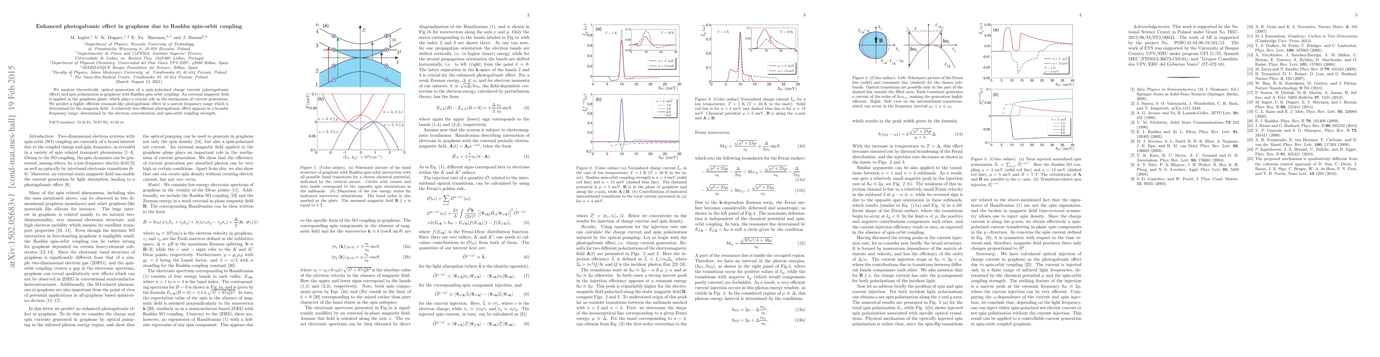 This paper theoretically explores the optical generation of spin-polarized charge current (photogalvanic effect) in graphene with Rashba spin-orbit coupling, showing a highly efficient resonant-like effect in a narrow frequency range determined by an applied magnetic field, and a less efficient effect in a broader range influenced by electron concentration and spin-orbit coupling strength.