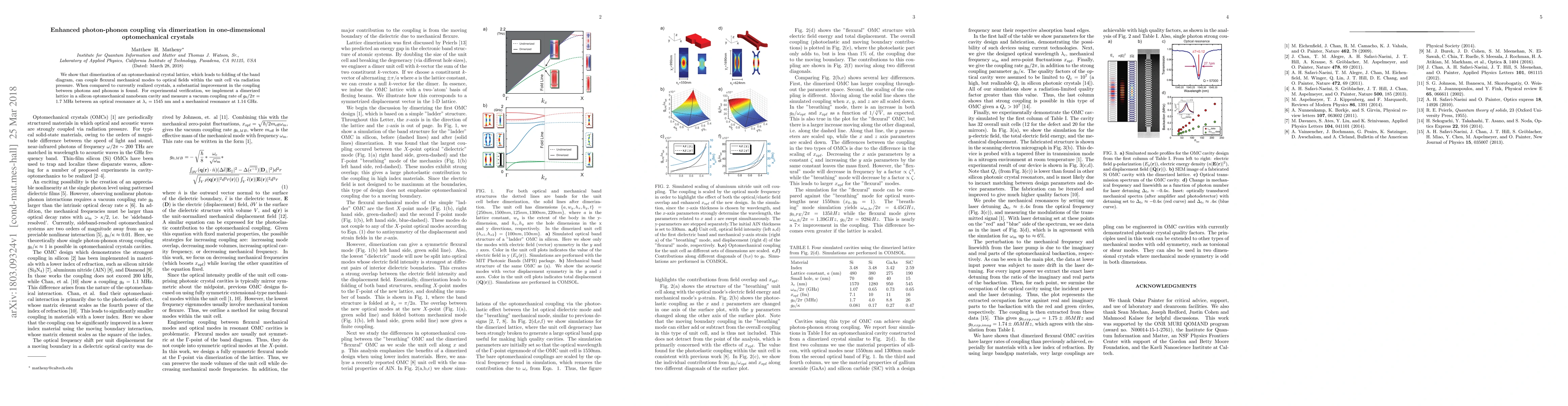 This paper demonstrates that dimerization of an optomechanical crystal enhances photon-phonon coupling by folding the band diagram and coupling flexural mechanical modes to optical fields. Experimental results show a significant improvement in coupling, with a measured vacuum coupling rate of $g_0/2\pi=1.7MHz$ in a silicon optomechanical nanobeam cavity.