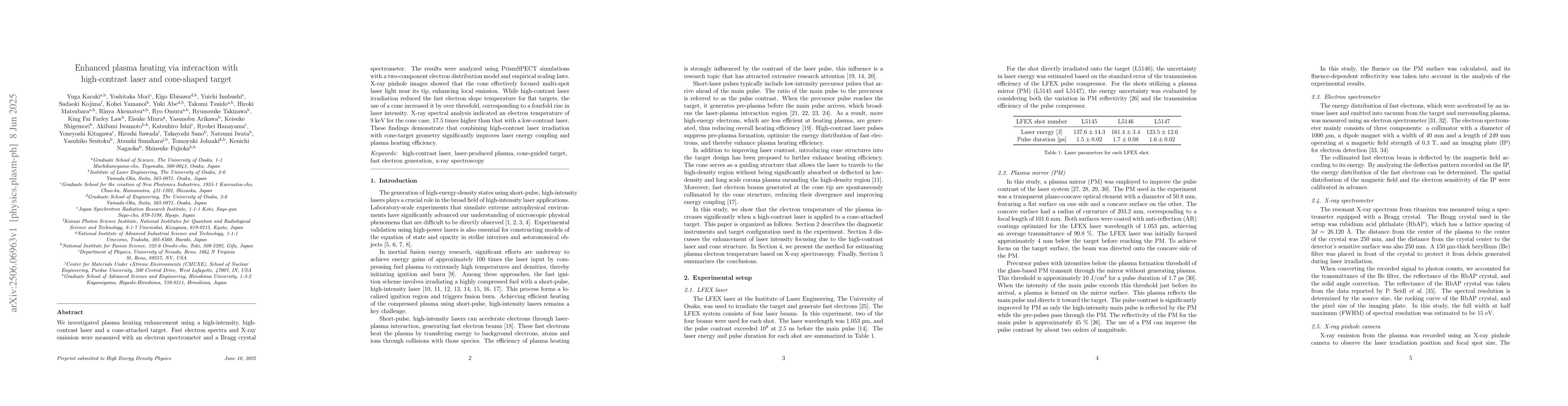 Researchers found that using a high-contrast laser with a cone-shaped target significantly improves plasma heating efficiency, increasing electron temperature by 17.5 times compared to low-contrast laser alone.