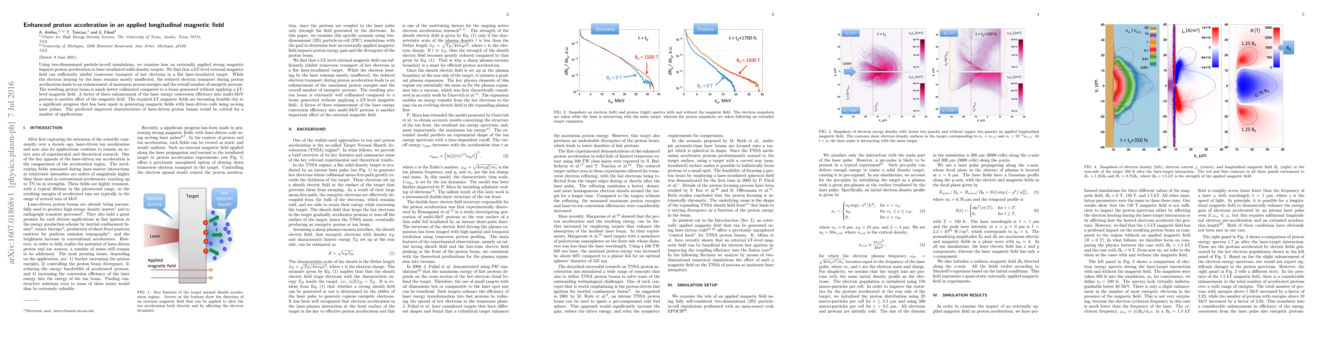 This study uses simulations to show that applying a strong longitudinal magnetic field can significantly enhance proton acceleration in laser-irradiated targets, leading to higher proton energies, better collimation, and a threefold increase in laser energy conversion efficiency into multi-MeV protons. The feasibility of generating these magnetic fields with modern laser technology suggests promising advancements for proton beam applications.
