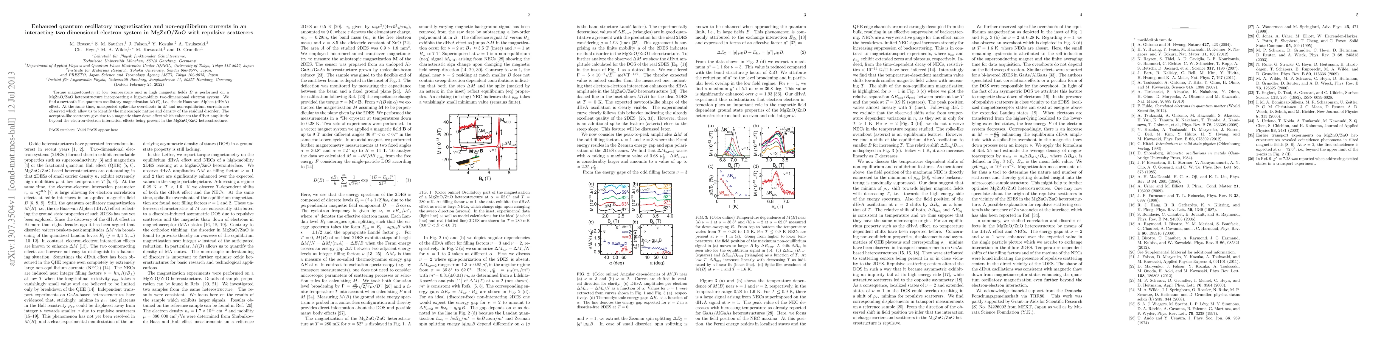 This study investigates a MgZnO/ZnO heterostructure with a high-mobility two-dimensional electron system, revealing sawtooth-like quantum oscillatory magnetization and unexpected spike-like overshoots in magnetization and non-equilibrium currents, attributed to acceptor-like scatterers enhancing the de Haas-van Alphen effect.