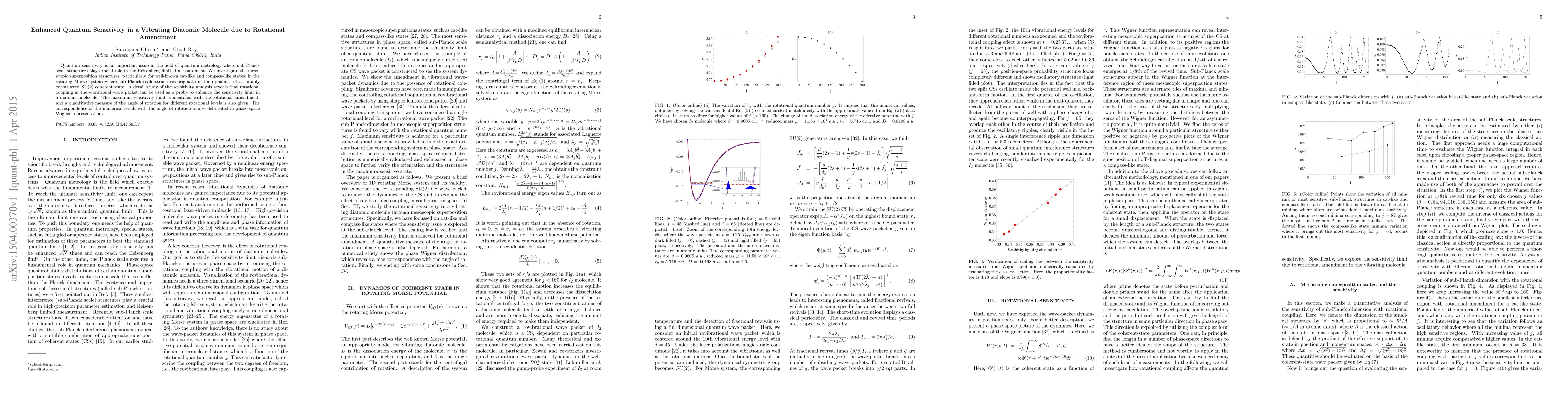 This paper explores how rotational coupling in a vibrating diatomic molecule can enhance quantum sensitivity in quantum metrology. The study reveals that the rotational amendment in the Morse system, particularly through the dynamics of SU(2) coherent states, can push the sensitivity limit, with a quantitative measure provided for different rotational levels.