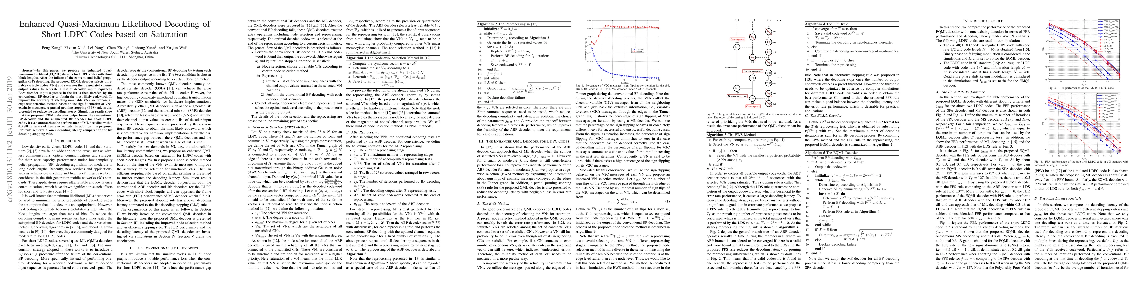This paper proposes an enhanced quasi-maximum likelihood (EQML) decoder for short LDPC codes, which selects unreliable variable nodes and saturates their outputs to generate decoder input sequences. The EQML decoder outperforms conventional belief propagation and augmented BP decoders, approaching the performance of maximum likelihood decoding within 0.3 dB in terms of frame error rate.