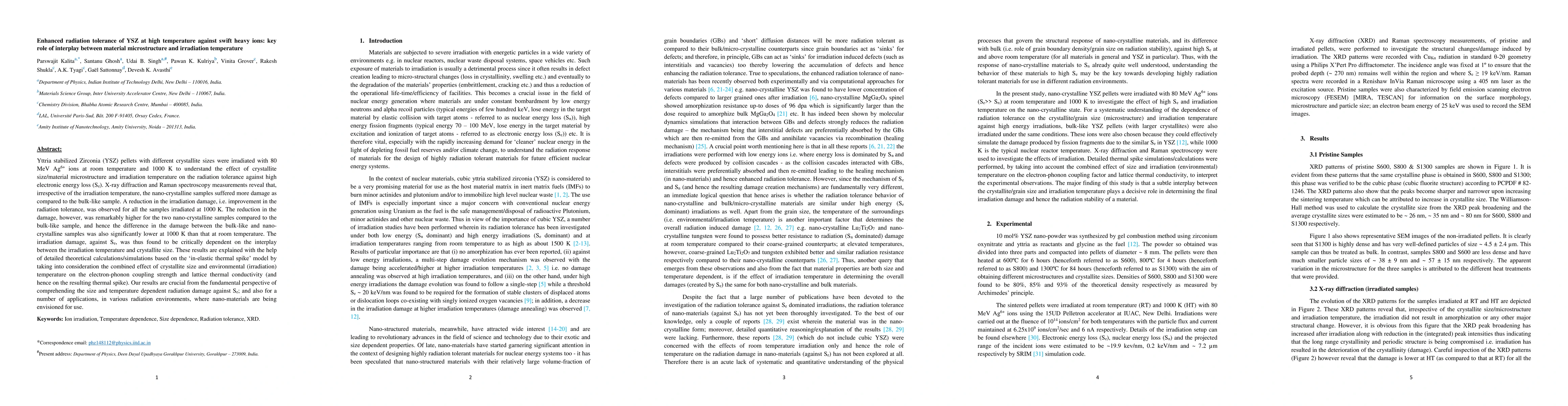 Research shows that nano-crystalline YSZ pellets have improved radiation tolerance when irradiated at high temperatures, with the effect size depending on both crystallite size and temperature.