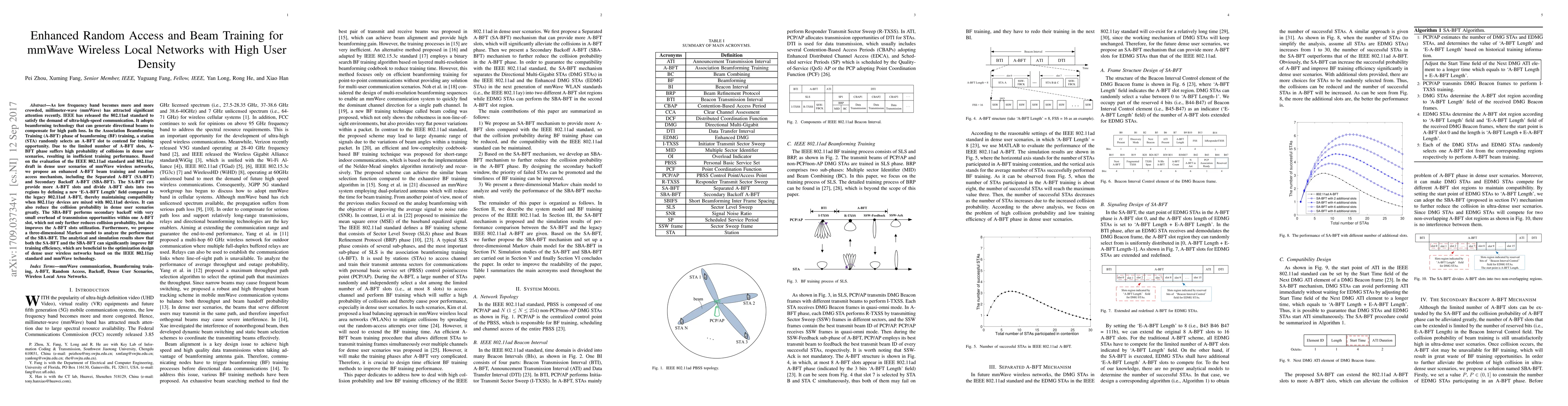 As low frequency band becomes more and more crowded, millimeter-wave (mmWave) has attracted significant attention recently. IEEE has released the 802.11ad standard to satisfy the demand of ultra-high-speed communication. It adopts beamforming technology that can generate directional beams to compensate for high path loss. In the Association Beamforming Training (A-BFT) phase of beamforming (BF) training, a station (STA) randomly selects an A-BFT slot to contend for training opportunity. Due to the limited number of A-BFT slots, A-BFT phase suffers high probability of collisions in dense user scenarios, resulting in inefficient training performance. Based on the evaluation of the IEEE 802.11ad standard and 802.11ay draft in dense user scenarios of mmWave wireless networks, we propose an enhanced A-BFT beam training and random access mechanism, including the Separated A-BFT (SA-BFT) and Secondary Backoff A-BFT (SBA-BFT). The SA-BFT can provide more A-BFT slots and divide A-BFT slots into two regions by defining a new `E-A-BFT Length' field compared to the legacy 802.11ad A-BFT, thereby maintaining compatibility when 802.11ay devices are mixed with 802.11ad devices. It can also reduce the collision probability in dense user scenarios greatly. The SBA-BFT performs secondary backoff with very small overhead of transmission opportunities within one A-BFT slot, which not only further reduces collision probability, but also improves the A-BFT slots utilization. Furthermore, we propose a three-dimensional Markov model to analyze the performance of the SBA-BFT. The analytical and simulation results show that both the SA-BFT and the SBA-BFT can significantly improve BF training efficiency, which are beneficial to the optimization design of dense user wireless networks based on the IEEE 802.11ay standard and mmWave technology.