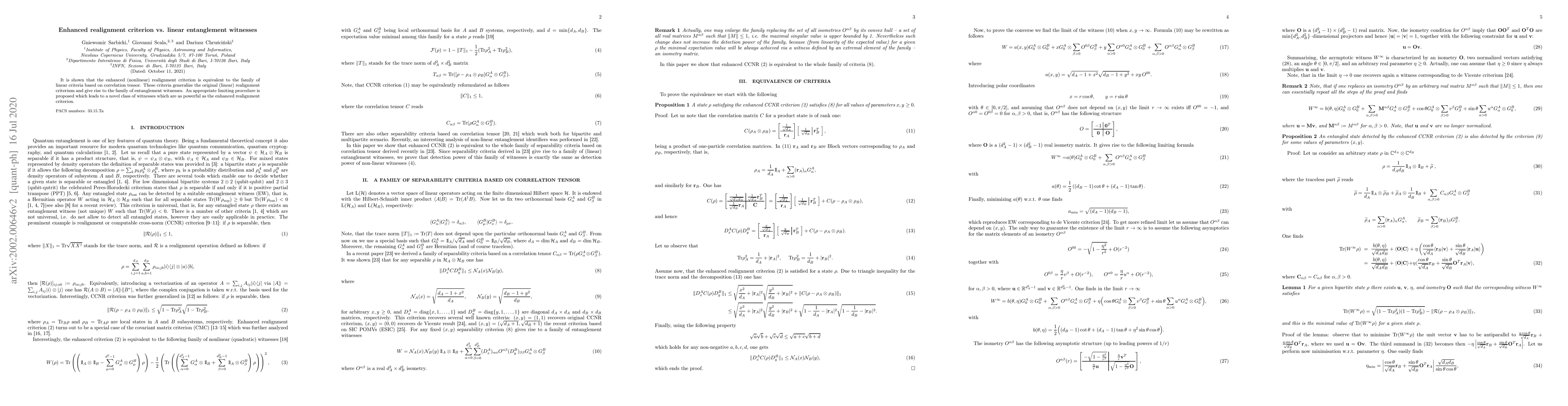 This paper demonstrates that the enhanced realignment criterion, a nonlinear measure, is equivalent to a set of linear criteria based on correlation tensors. It introduces a novel limiting procedure to generate a new class of entanglement witnesses that match the power of the enhanced realignment criterion.