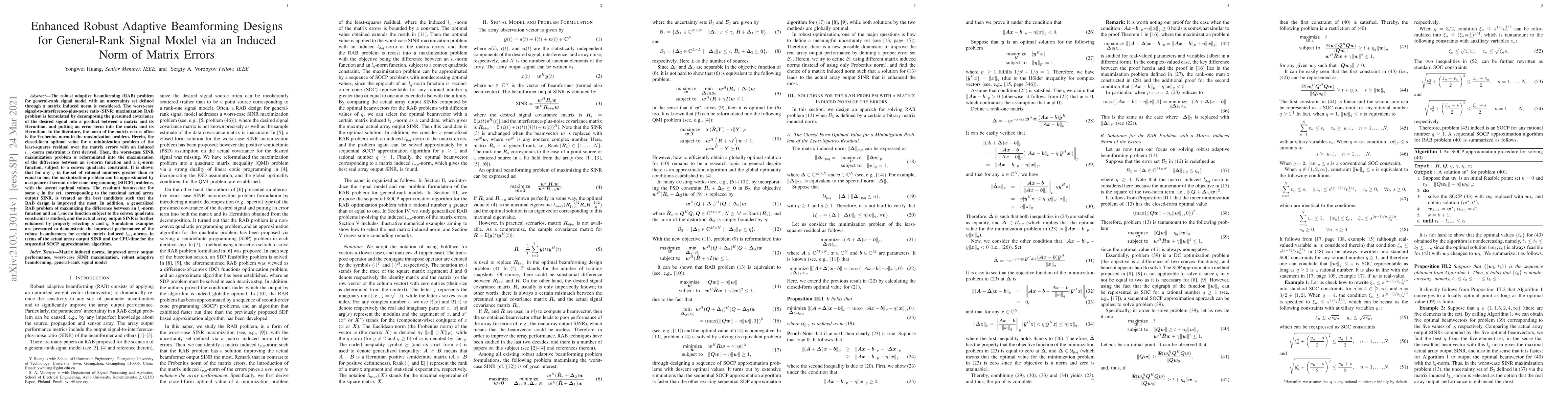 This paper proposes enhanced robust adaptive beamforming designs for general-rank signal models using an induced norm of matrix errors. It reformulates the worst-case SINR maximization problem into a sequence of second-order cone programming problems, improving the beamformer's performance and demonstrating enhanced actual array output SINR through simulations.
