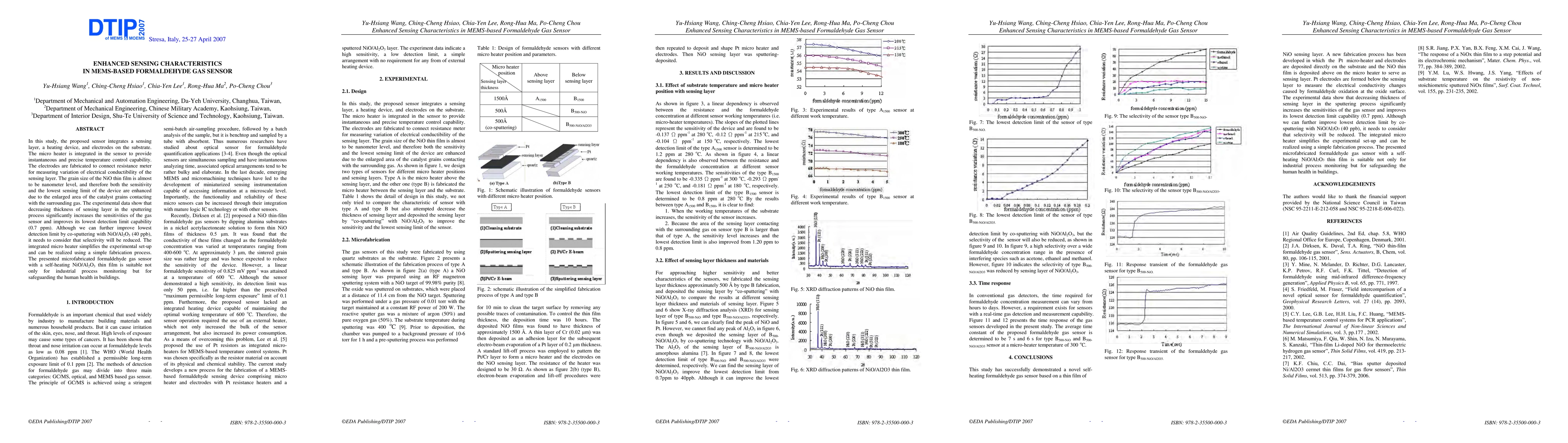 A new formaldehyde gas sensor using a self-heating NiO sensing layer has been developed, showing improved sensitivity and detection capabilities through co-sputtering of the sensing layer and electrodes.