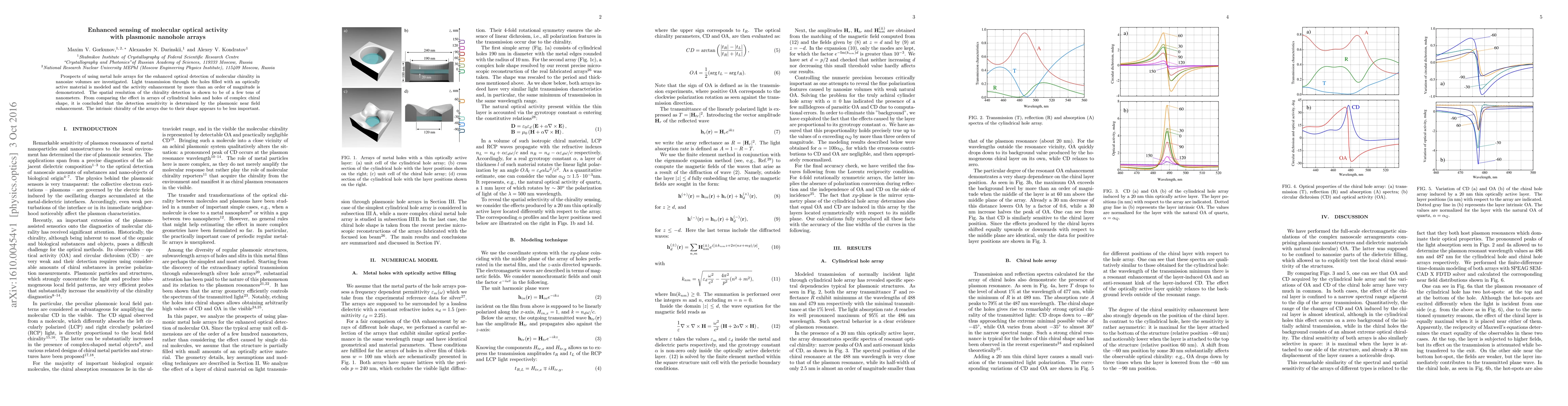 Researchers developed a method to detect molecular optical activity with enhanced sensitivity using plasmonic nanohole arrays, achieving detection in volumes smaller than 100 nm.