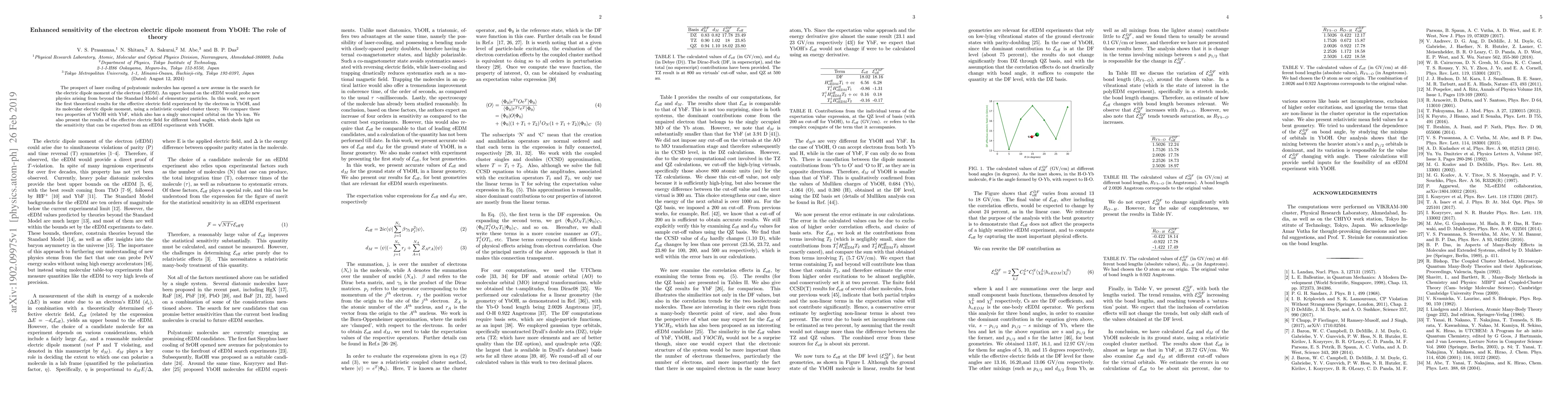 This research is crucial for understanding the prospects of an eEDM experiment with YbOH, as it calculates EeFF and dM, providing valuable input for such experimental feasibility studies.