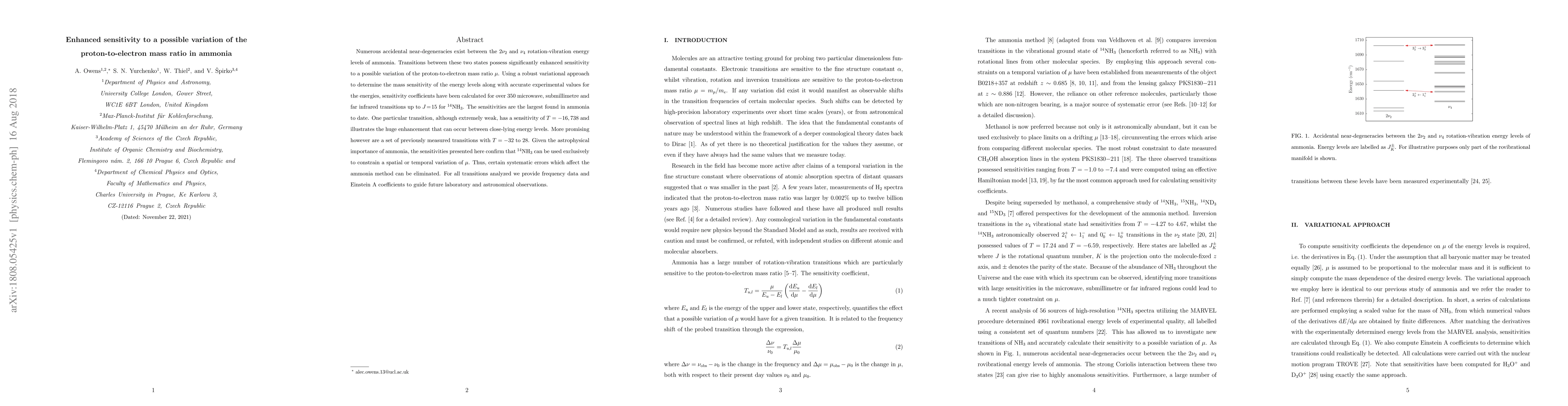 This paper investigates the enhanced sensitivity of ammonia's $2\nu_2$ and $\nu_4$ energy levels to variations in the proton-to-electron mass ratio $\mu$, finding significant sensitivity in over 350 transitions, with one transition showing a sensitivity of $T=-16,738$. The study concludes that $^{14}$NH$_3$ can be used to constrain $\mu$ variations, eliminating certain systematic errors.
