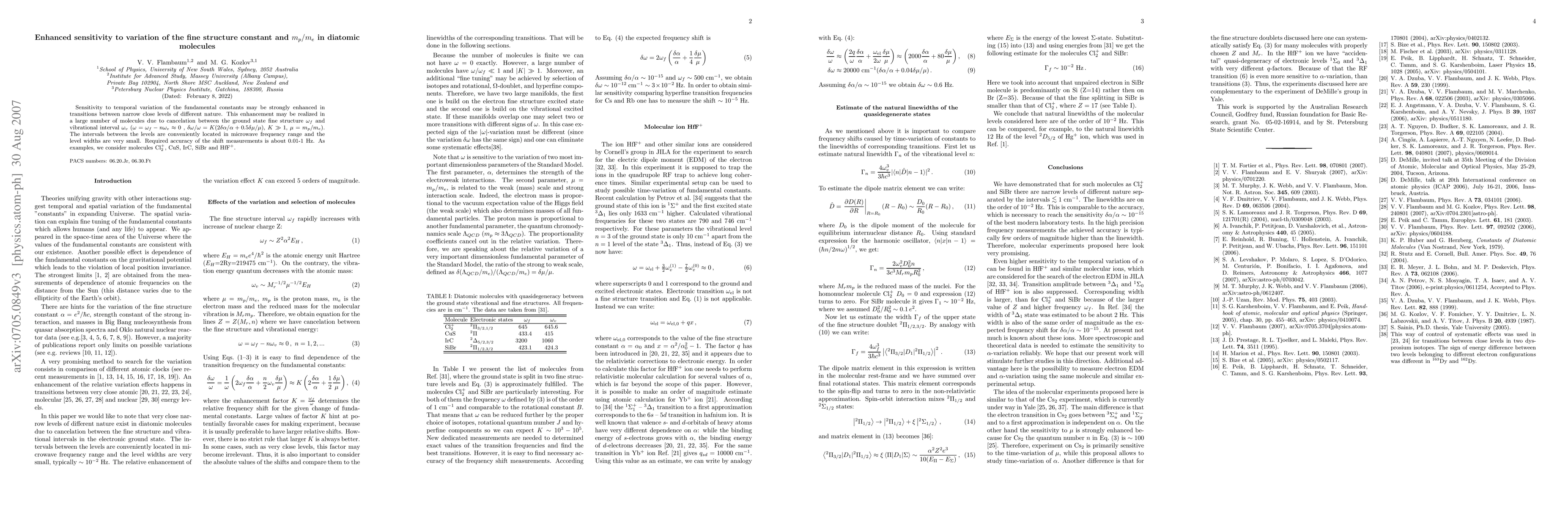 This paper explores how transitions between closely spaced levels in diatomic molecules can exhibit enhanced sensitivity to variations in fundamental constants like the fine structure constant and the proton-to-electron mass ratio. Such sensitivity is due to the cancellation between ground state fine structure and vibrational intervals, making measurements in the microwave frequency range feasible with high precision.