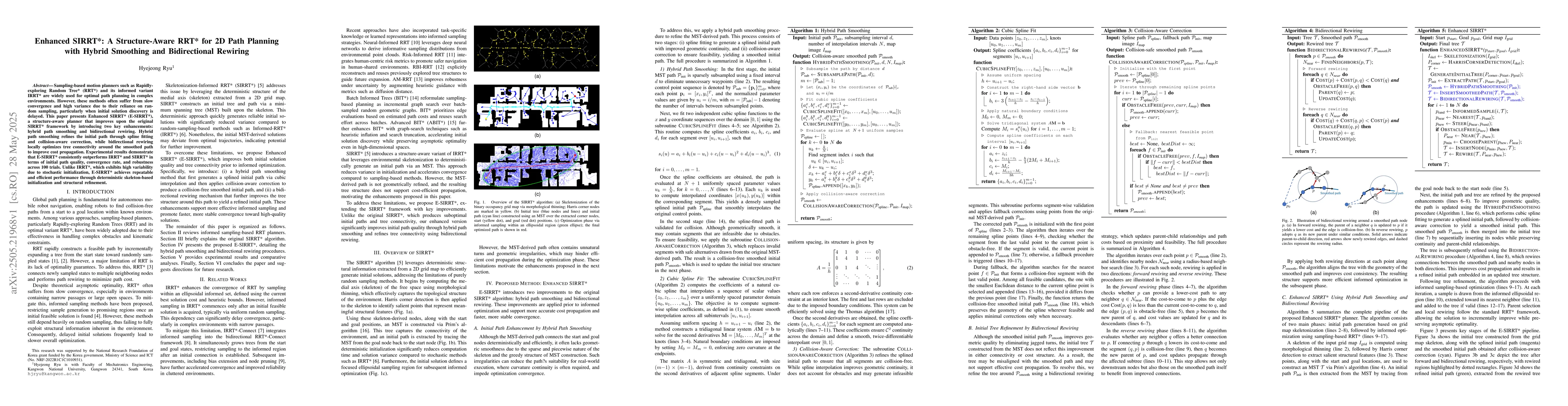 The paper introduces Enhanced SIRRT* (E-SIRRT*), which builds upon the SIRRT* framework by incorporating hybrid path smoothing and bidirectional rewiring techniques for improved 2D path planning in complex environments.