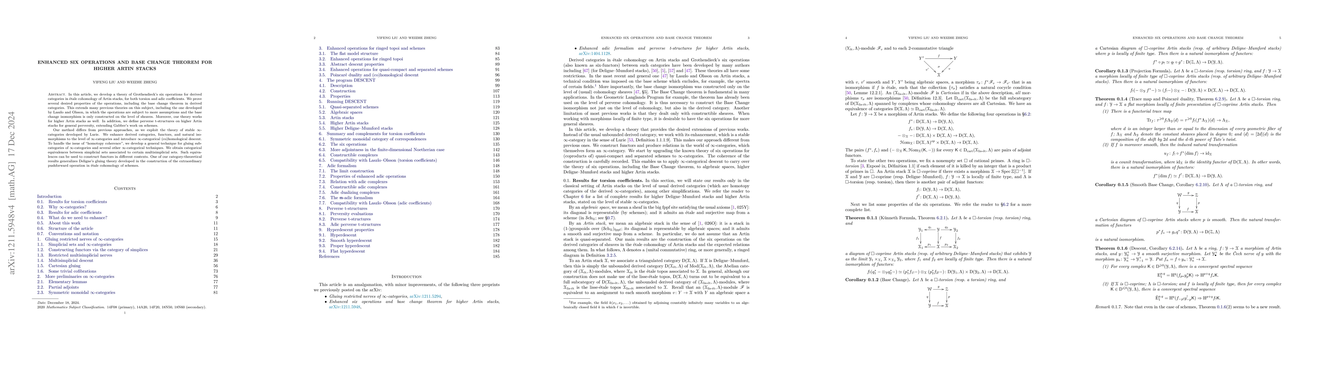 This paper develops a novel theory of Grothendieck's six operations for derived categories in \'etale cohomology of Artin stacks, extending previous theories by proving the base change theorem and working for higher Artin stacks. The authors utilize stable $\infty$-categories and $\infty$-categorical techniques to achieve these advancements.
