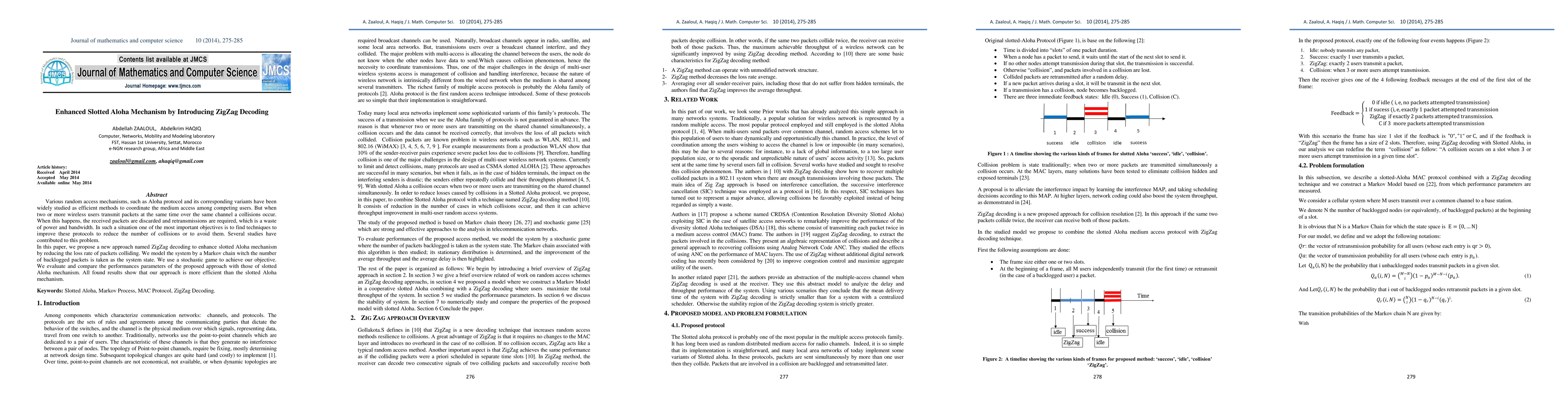 This paper proposes a ZigZag decoding method to enhance the slotted Aloha mechanism, aiming to reduce packet collisions and improve efficiency. The authors model the system using a Markov chain and a stochastic game, demonstrating that their approach outperforms the traditional slotted Aloha in terms of collision reduction and overall performance.