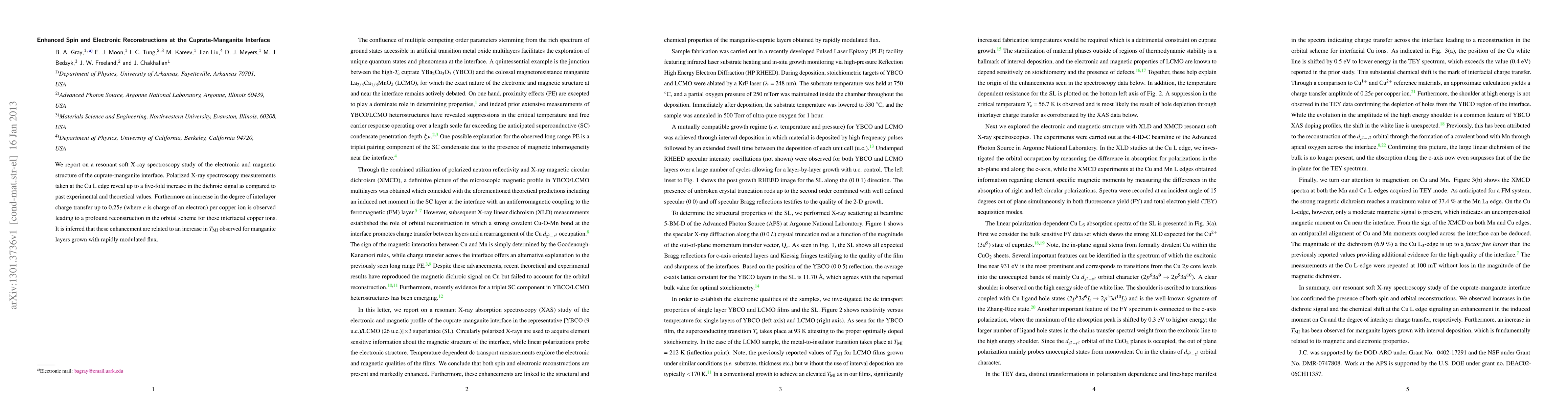 We report on a resonant soft X-ray spectroscopy study of the electronic and magnetic structure of the cuprate-manganite interface. Polarized X-ray spectroscopy measurements taken at the Cu L edge reveal up to a five-fold increase in the dichroic signal as compared to past experimental and theoretical values. Furthermore an increase in the degree of interlayer charge transfer up to 0.25e (where e is charge of an electron) per copper ion is observed leading to a profound reconstruction in the orbital scheme for these interfacial copper ions. It is inferred that these enhancement are related to an increase in TMI observed for manganite layers grown with rapidly modulated flux.