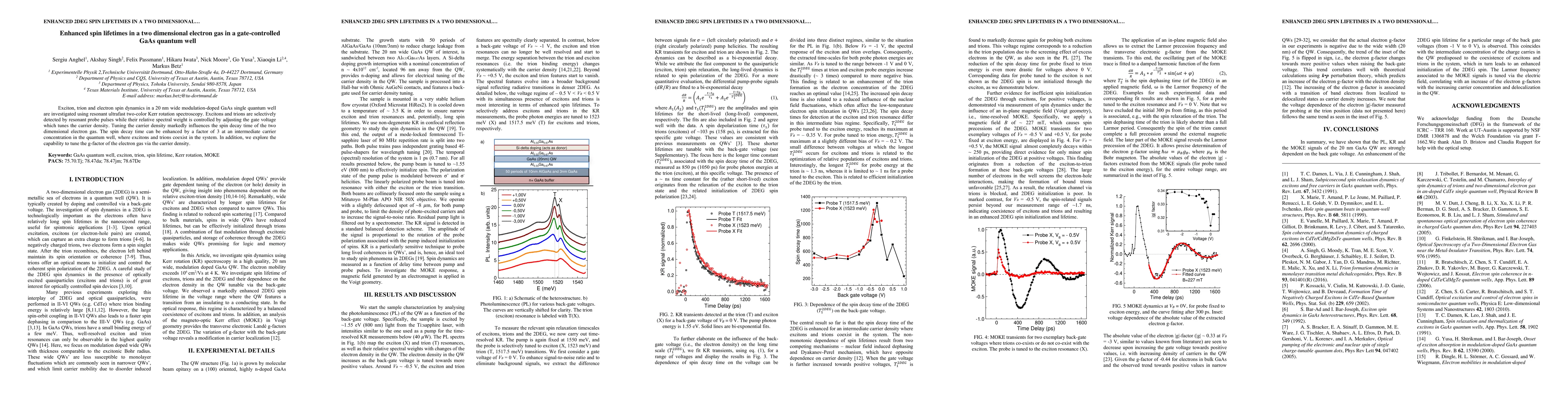 This paper investigates spin dynamics in a gate-controlled GaAs quantum well using ultrafast spectroscopy, finding that spin lifetimes can be enhanced by a factor of 3 at an intermediate carrier density where excitons and trions coexist. The study also explores the tunability of the electron gas's g-factor through carrier density adjustments.
